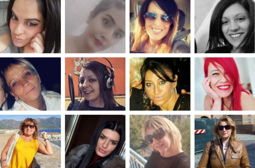 Chiara Ugolini aveva 27 anni, era laureata in Scienze Politiche e faceva la commessa nel negozio di abbigliamento del padre del fidanzato. È stata trovata senza vita in casa, un appartamento a Calmasino di Bardolino (Verona). Sarebbe morta per una emorragia interna, dopo essere stata costretta ad ingerire candeggina. È stato subito fermato un vicino di casa, che sarebbe salito sul terrazzo di Chiara e l’avrebbe aggredita a morte. Ada Rotini aveva 46 anni, lavorava come badante ed era mamma di due adolescenti. È stata uccisa dal marito mentre si trovata vicino alla sua auto, con a bordo una sorella e l’anziano signore di cui si prendeva cura. Lo stesso giorno si sarebbe dovuta tenere la prima udienza di separazione della coppia. Angelica Salis aveva 60 anni, era casalinga e mamma di tre figli. È stata uccisa dal marito al termine di una lite. L’uomo ha poi chiamato i carabinieri. Rita Amenze aveva 30 anni, era impiegata in un’azienda, mamma di tre figli e originaria della Nigeria. È stata uccisa dal compagno con tre colpi di pistola. I due erano separati e il giorno prima dell’omicidio la donna si era rivolta ai carabinieri per segnalare alcuni maltrattamenti subiti, ma senza alcuna formalizzazione di denuncia. Giuseppina di Luca aveva 46 anni, era mamma di due figli e impiegata in una fabbrica. Ha perso la vita perché colpita ripetutamente dall’ex marito. I due si stavano per separare e già non vivevano più sotto lo stesso tetto. Sonia Lattari aveva 43 anni, era mamma di due figli. È stata uccisa a Fagnano Castello, in provincia di Cosenza. A compiere l’omicidio sarebbe stato il marito, che ha chiamato i soccorsi. Alessandra Zorzin aveva 21 anni, era mamma di due bambine. È stata raggiunta da alcuni colpi di pistola in casa, sparati da un uomo a cui la donna avrebbe spontaneamente aperto la porta. L’uomo si è tolto la vita alcune ore dopo l’omicidio. Dorjana Cerqueni aveva 60 anni e viveva a Rubano, in provincia di Padova. Il giorno del suo compleanno è stata uccisa dal padre, che poco dopo si è tolto la vita. Il movente si sarebbe trovato tra le pagine scritte dal padre: un astio profondo di anni covato nei confronti della figlia e del marito. Anna Cupelloni aveva 65 anni e viveva a Castel Sant'Elia, in provincia di Viterbo. È stata uccisa dal marito, che subito dopo si è tolto la vita. Alla scena ha assistito una figlia, che subito chiamato i soccorsi. I due si stavano separando.