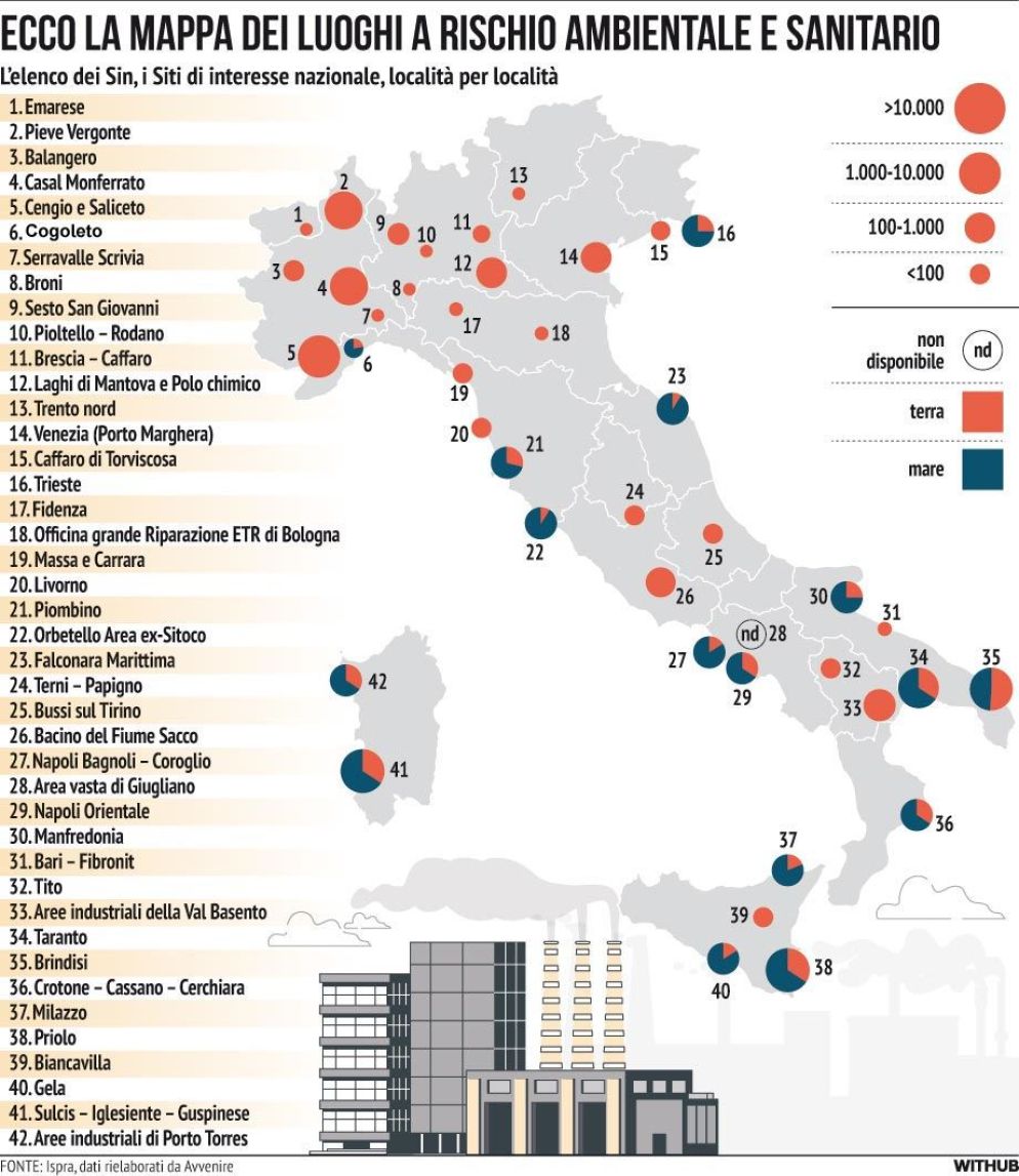 Metalli, diossine, idrocarburi: ecco i 42 siti contaminati. E pericolosi