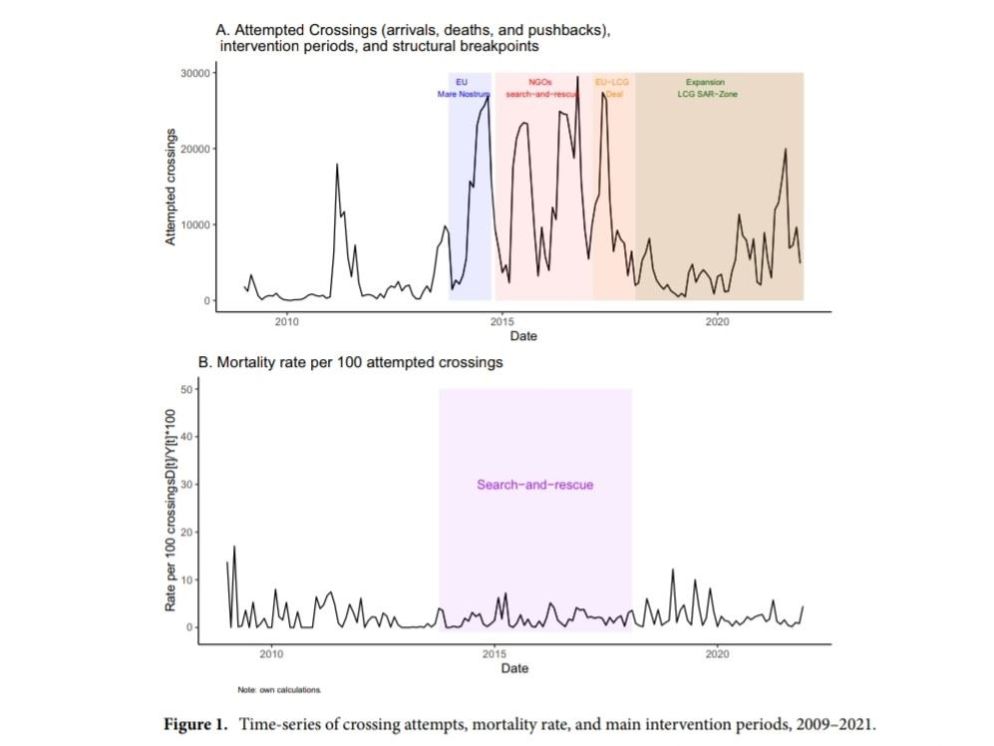 Per gli autori dello studio approvato da Nature, è stato riscontrato come la presenza di soccorritori in mare “non incentiva ulteriori tentativi di attraversamento. Tuttavia, il numero di attraversamenti di frontiera sembra essere guidato da alcuni cambiamenti nell'intensità dei conflitti, nei prezzi dei prodotti di base e delle materie prime e dei disastri naturali, nonché dalle condizioni meteorologiche, dagli scambi valutari e dal traffico aereo tra Nord Africa e Medio Oriente e l'Unione Europea”.