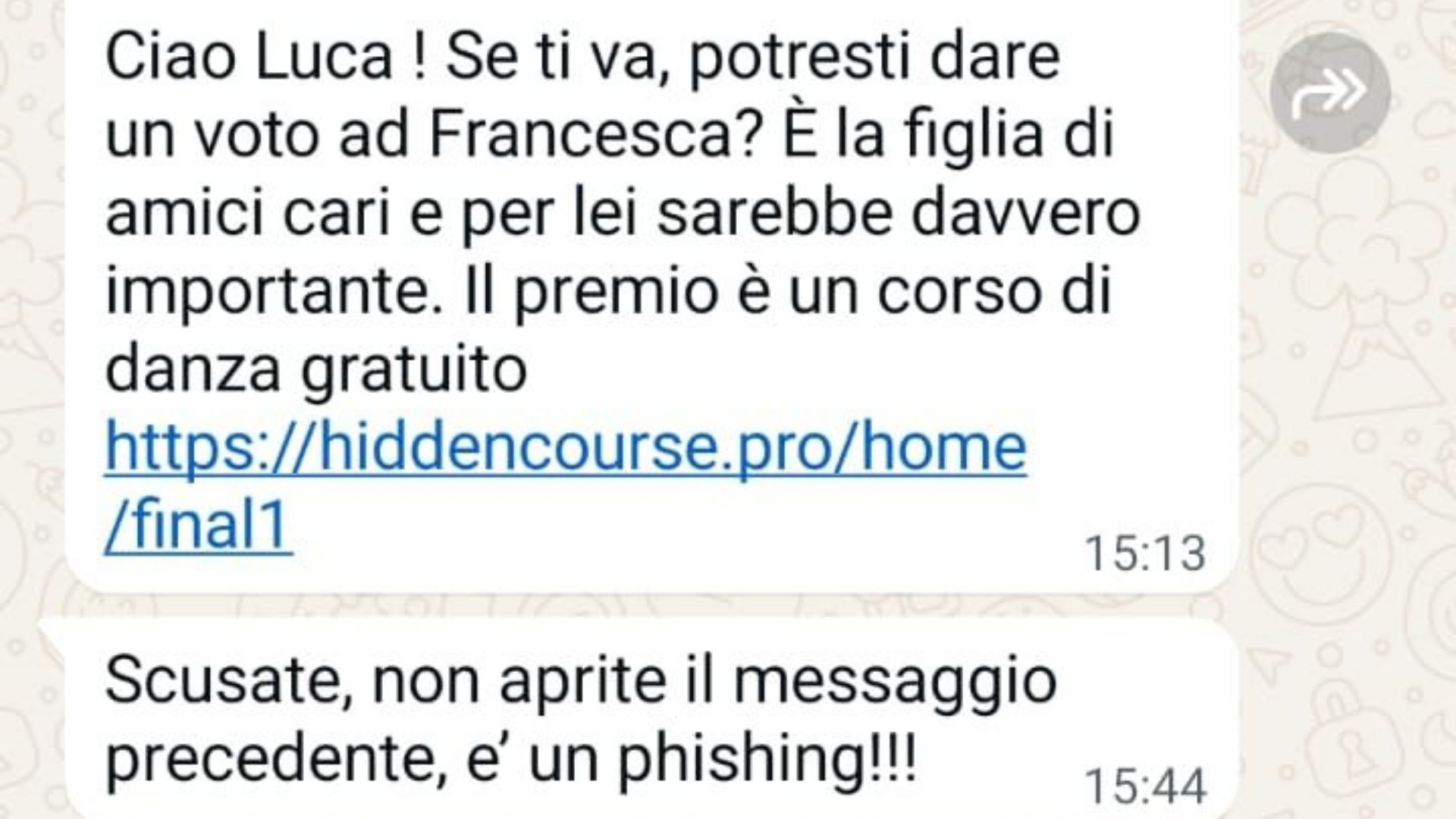 Il meccanismo è semplice: un messaggio diffuso da un numero usa e getta mostra foto stereotipate di ragazzine vestite da ballerine di danza classica (con tanto di tutù in vendita), con una didascalia che annuncia che si sta tenendo un “concorso di ballerine sui social” e la vincitrice avrà una borsa di studio oppure non pagherà le lezioni di danza per un anno intero. Il messaggio arriva da numeri in agenda, con toni amichevoli. “Ciao! Se non è un problema potresti votare per mia nipote? Manca davvero poco" e proprio per questo è particolarmente insidioso.