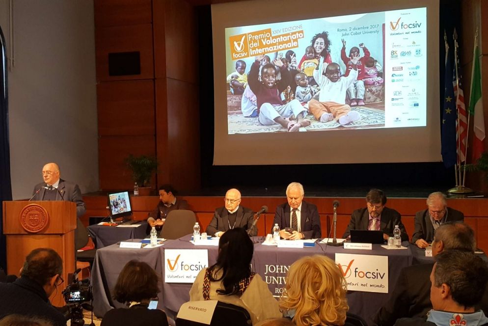 Alla cerimonia di premiazione, ospitata stamattina presso la John Cabot University a Trastevere, dopo l'introduzione del presidente della Focsiv Gianfranco Cattai, non ha fatto mancare un suo messaggio il presidente della Cei cardinale Gualtiero Bassetti, letto dal rappresentante della Cei in Focsiv, monsignor Luigi Bressan: «Mi preme rimarcare l'attenzione e l'affetto della Chiesa italiana per la vostra preziosa realtà. Vi confermo - ha ribadito il presidente della Cei - l'apprezzamento dei vescovi per il vostro inesausto impegno di servizio di volontariato, di identità e di matrice cristiana che da 45 anni agisce per costruire un mondo di giustizia, pace e fraternità tra i popoli. Dal 1972 avete formato e messo in campo ben 25 mila volontari che si sono spesi e si spendono in prima persona per dare testimonianza del vero senso del volontariato che è prima di tutto dono e gratuità. Che per noi cristiani - ha detto Bassetti - resta prima di tutto un dovere e una missione oltre che una responsabilità non eludibile. Il Sud del mondo continua ad interpellarci e a chiederci di costruire, in Occidente come nei paesi di origine, società e comunità dove nessuno si senta rifiutato, scartato, emarginato, sfruttato. Dove siano garantiti diritti di tutti».