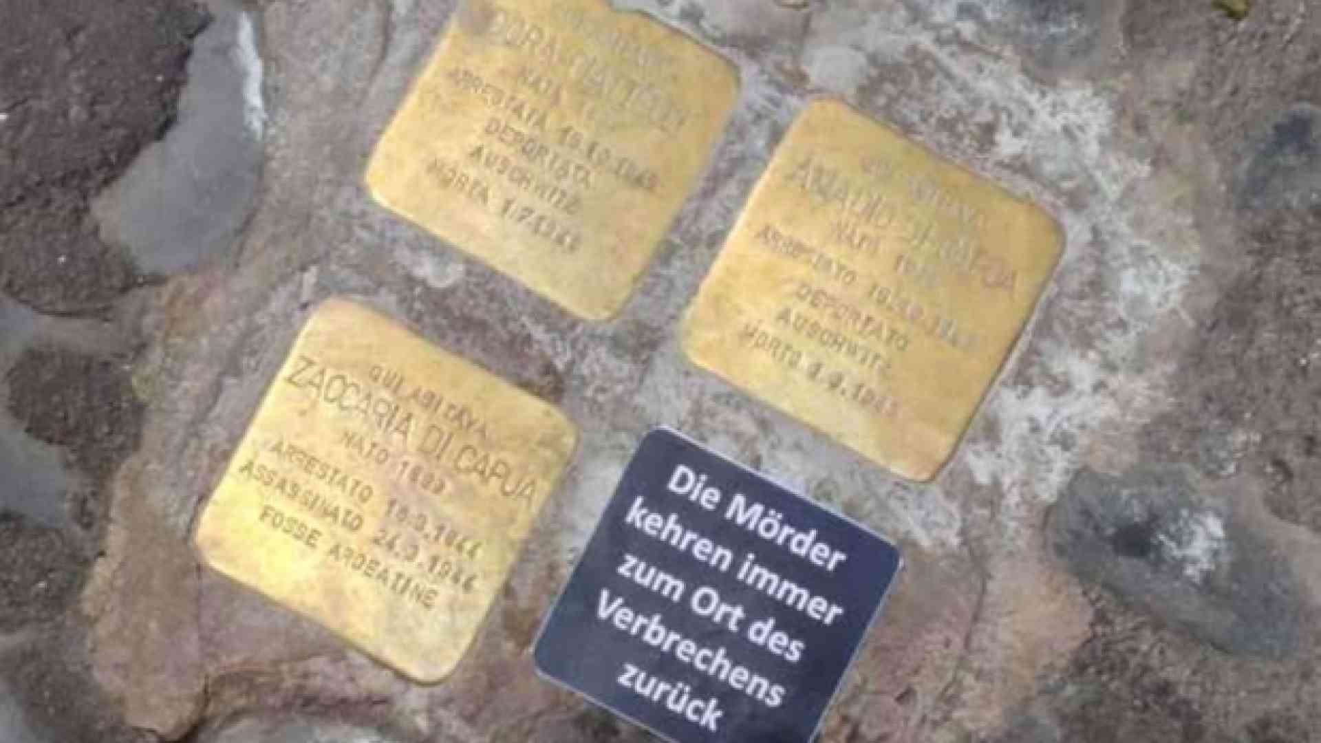 Profanazione a Roma, adesivo in tedesco sulle «pietre d'inciampo»
