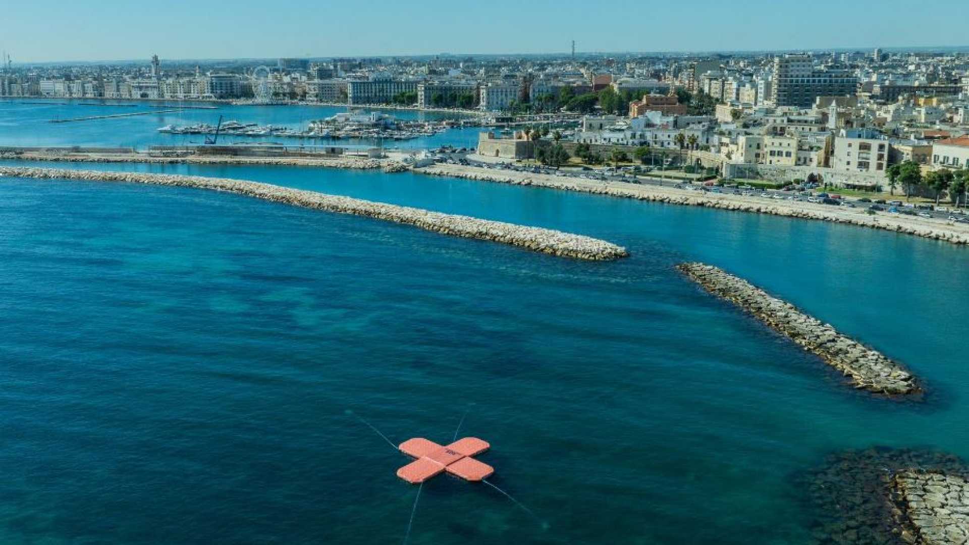 Un simbolo che galleggia in mezzo al mare di fronte alla città di Bari: un enorme cerotto che simboleggia la "ferita" del Mediterraneo con i suoi 42.500 morti degli ultimi anni