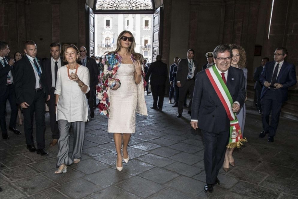 Le first lady si sono poi ritrovate a Catania, accolte dal sindaco Enzo Bianco, che le ha omaggiate con un libro sulla città e le ha invitate a pranzo nel palazzo del comune. Menù all'insegna della tradizione siciliana: nuvola di caprese, baccalà all'affumicatura di pigna con condimento alla pizzaiola, 'trasparenza' di teneruma di cucuzza, arancini di riso con ragu di triglia e finocchietto selvatico, ricciola lisciata all'olio di cenere, cornucopia di cialda cannolo con ricotta e aranci. Da bere Carricante brut, Spumante Doc di Sicilia, Etna bianco e rosso. Al termine del pranzo non è mancata una dedica sul libro degli ospiti.