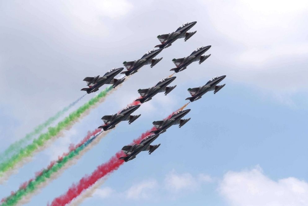 In mattinata, dopo la passerella sul corso della città, i leader hanno poi potuto ammirare le frecce tricolore in azione nei cieli di Taormina.