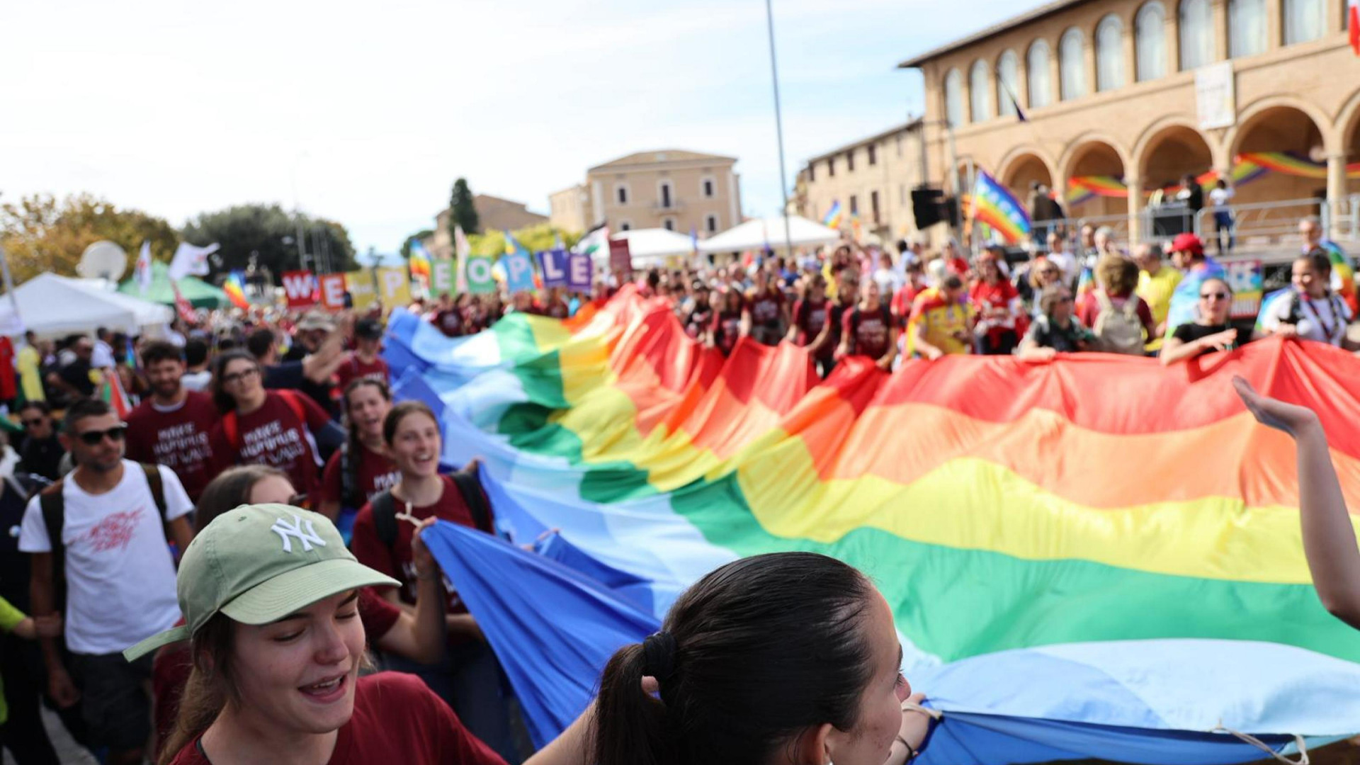È arrivata anche la benedizione apostolica di papa Leone per il «popolo della pace» della Marcia Perugi Assisi. Una delle edizioni più partecipate di sempre. Gli organizzatori hanno parlato di 200mila persone. Questo pomeriggio, 12 ottobre, dal palco allestito sulla Rocca Maggiore, è stato monsignor Domenico Sorrentino, vescovo della diocesi di Assisi – Nocera Umbra – Gualdo Tadino, a leggere il messaggio inviato dal Pontefice. La testa del corteo era arrivata da pochi minuti, intorno alle 15, accolta da un grande e prolungato applauso. Ma la spianata era già piena di bandiere, quelle della pace e della Palestina le più gettonate, insieme a numerosi cartelli e striscioni. «Leone XIV – ha letto Sorrentino - rivolge ai partecipanti il suo cordiale saluto esultando a implorare dal Signore il dono della riconciliazione e della stabile concordia in quelle parti del mondo segnate dai conflitti». Poi ha aggiunto a braccio: «Ci sono più di cinquanta conflitti nascosti nel mondo. Noi siamo per la pace di tutti». Il Papa, ha continuato il vescovo, «auspica che la manifestazione sostenga l'impegno degli organismi internazionali in favore di soluzioni rispettose dei diritti di ciascuno e capaci di creare condizioni necessarie perché finalmente all'odio subentri l'amore e all'offesa il perdono».