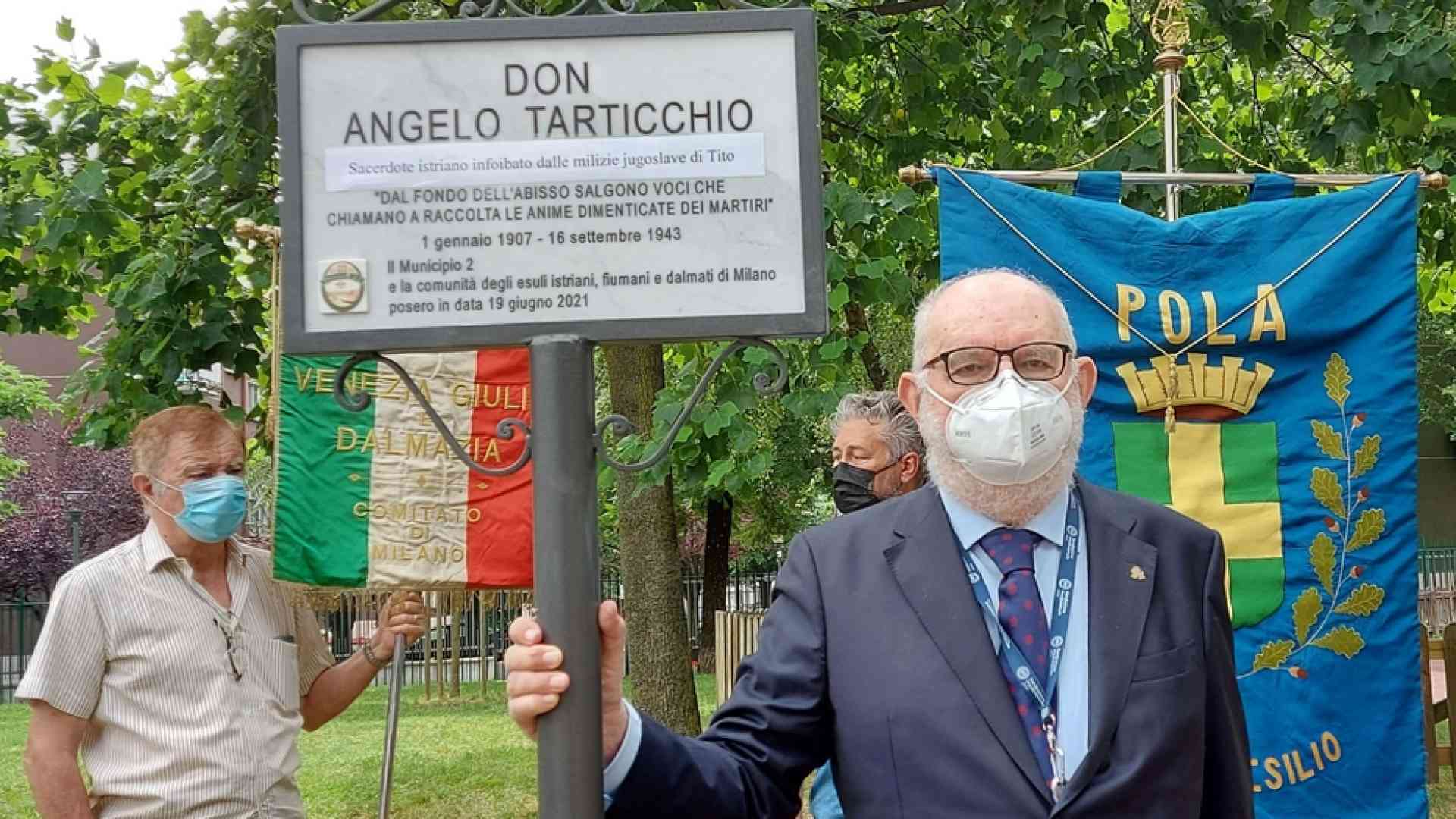 Quasi 80 anni dopo il suo martirio, Milano ieri ha inciso nel marmo la memoria di don Angelo Tarticchio, giovane sacerdote istriano prelevato la notte del 16 settembre 1943 dalla canonica di Villa di Rovigno dai partigiani comunisti di Tito e infoibato dopo una notte di sevizie insieme a 43 parrocchiani. Riesumato dai Vigili del Fuoco di Pola un mese dopo, fu trovato nudo, mutilato e con sul capo una corona di spine in filo di ferro.