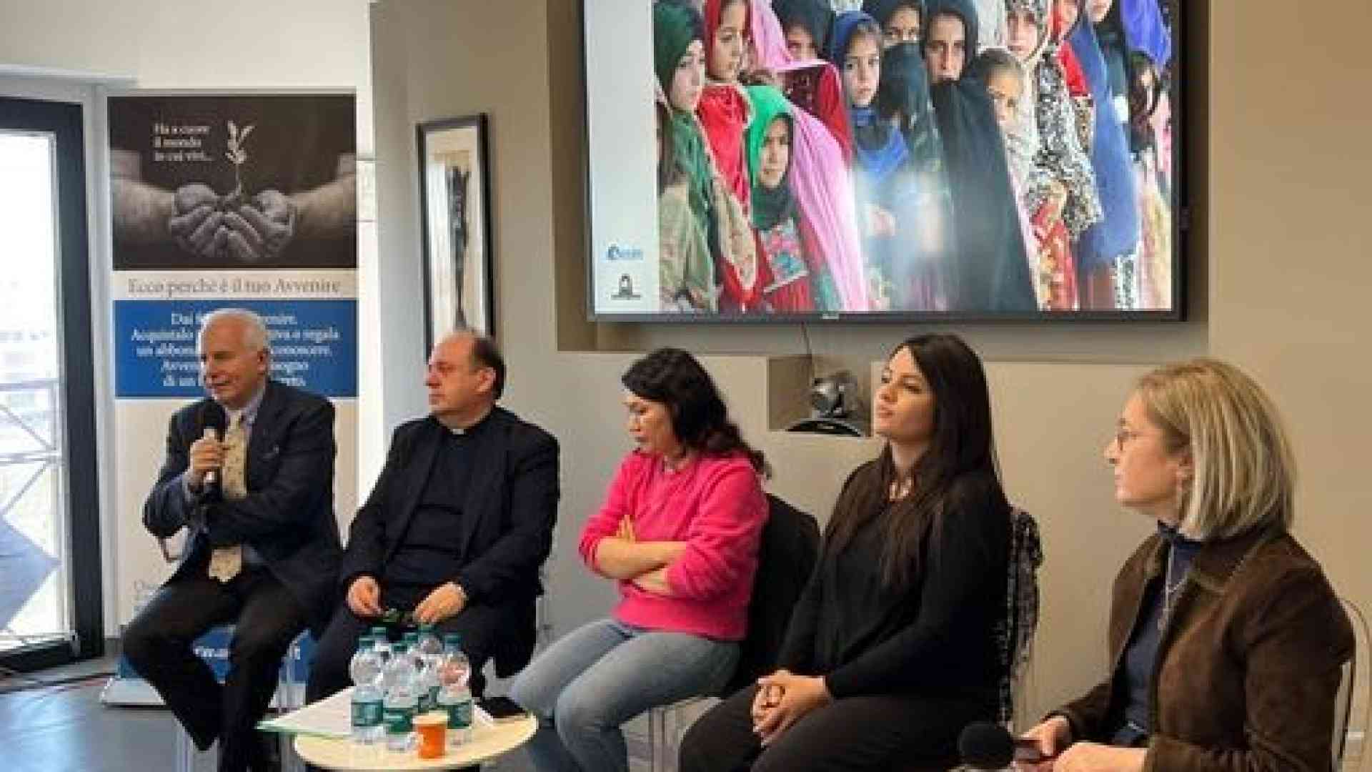Durante l'incontro le testimonianze toccanti di due giovani profughe afghane, Elnaz Mahandes e Madina Hassani. «Sono arrivata dall’Afghanistan nell’agosto 2021 con una laurea in Scienze sociali e un master conseguito in India, al momento lavoro con l’Università Sant’Anna di Pisa», ha raccontato la prima, accolta tra le 31 persone della sua stessa nazionalità da Casa della Carità di Milano, sottolineando la necessità che della condizione delle donne afghane si continui a parlare: «Viviamo in una prigione, alle ragazze è impedito tutto». Madina, mediatrice culturale, 27 anni, studi in scienze sociali, da parte sua ha sottolineato: «Le donne afghane hanno subito storicamente una mutilazione dei propri diritti, abbiamo bisogno di qualcuno che le aiuti a fare sentire la loro voce. Se adesso le donne sono completamente invisibili, anche prima i diritti sanciti dal governo precedente ai talebani valevano solo per la classe medio alta, ma non a livello rurale. Eravamo dimenticate anche allora».