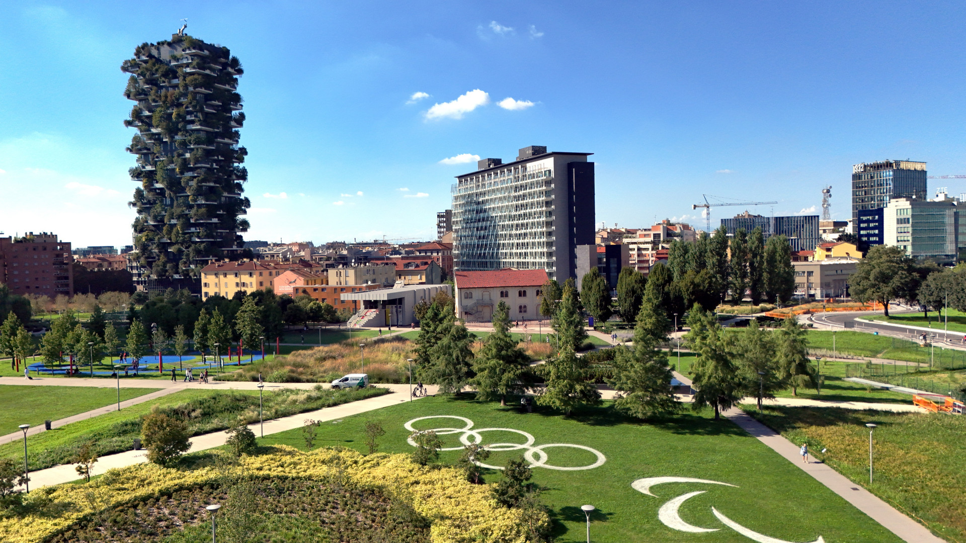 Una veduta del Bosco degli alberi di Milano, realizzato fra i grattacieli del quartiere Gae Aulenti e Porta Nuova