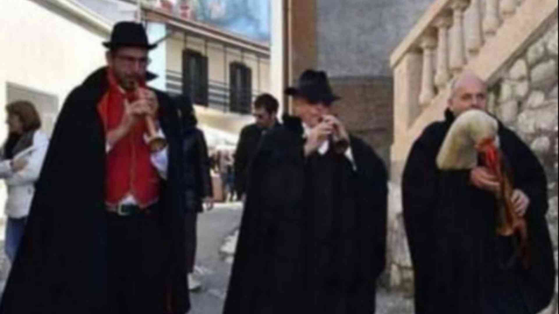Quando nelle città si sente l’inconfondibile suono che fa tanto periodo natalizio e che conosce l’apice soprattutto nella settimana che precede l’Epifania, subito si pensa agli zampognari arrivati dalla Ciociaria, con ai piedi i caratteristici calzari che hanno dato il nome a questo territorio. «Ma oramai non sono più di 40-45 le coppie di zampognari che dai primi di dicembre e fino alla befana scendono verso Roma e le città del nord», prende a raccontare Massimo Antonelli, che con altri giovani di questi paesi ha raccolto l’eredità degli avi, dando vita ad una serie di iniziative che ruotano attorno al gruppo culturale “Calamus” e che uniscono modernità e tradizione. «Gli zampognari di Picinisco, Villa Latina e San Biagio Saracinisco hanno avuto sempre la particolarità, rispetto a quelli di altre zone d’Italia, di essere grandi viaggiatori. Già a fine ‘800 li troviamo in Spagna, Francia e perfino sulla piazza Rossa di Mosca. Lo facevano spinti dalla fame: qui non c’era lavoro e allora giravano l’Italia e l’Europa con i loro strumenti, dopo aver appreso i primi rudimenti musicali da qualche compaesano».