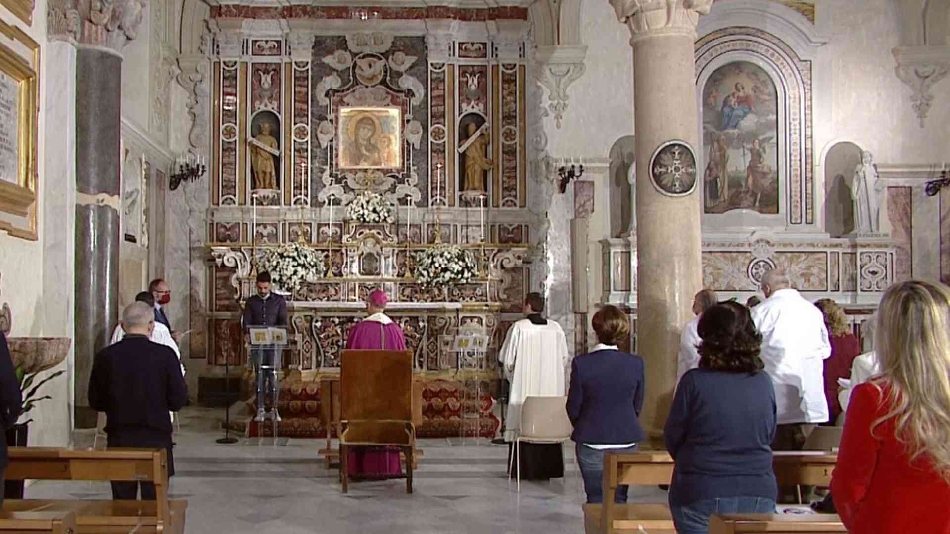 «O Madonna della Bruna, a te che percorri le strade della città presentiamo il profondo dolore di questo nostro mondo tormentato, le ansie e le speranze dell’umanità sofferente, ti offriamo l’amore di quanti ogni giorno curano affidandosi alle tue mani». L’arcivescovo di Matera-Irsina, Antonio Giuseppe Caiazzo si rivolge direttamente alla Vergine con una preghiera di supplica. Una invocazione a chiusura della recita del Rosario per l’Italia, che stasera ha fatto tappa nella Basilica Cattedrale di Matera, dedicata alla Madonna della Bruna e a Sant’Eustachio.