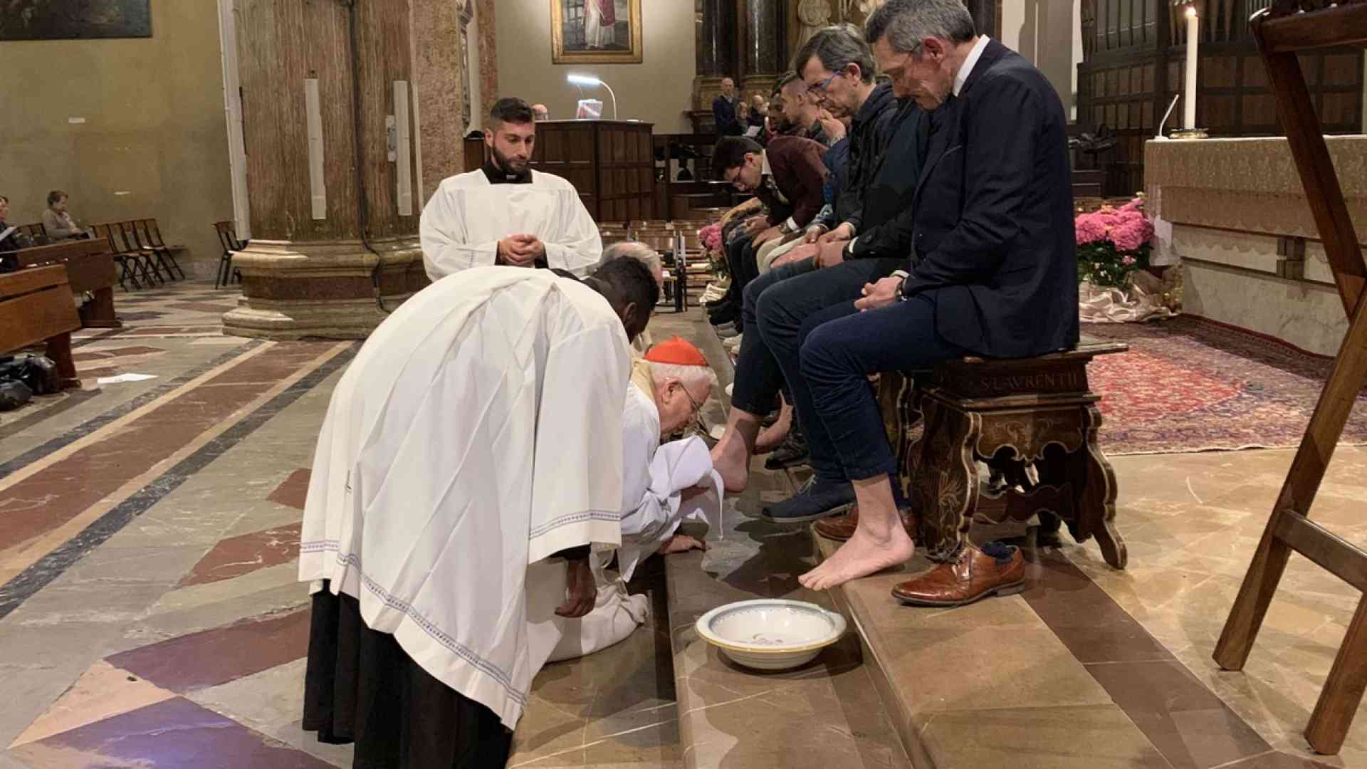 A Perugia la lavanda dei piedi prima alle detenute del carcere; poi a un gruppo di giovani fra cui alcuni profughi. Il cardinale: l'Eucaristia è un fuoco che spinge al servizio e all'accoglienza