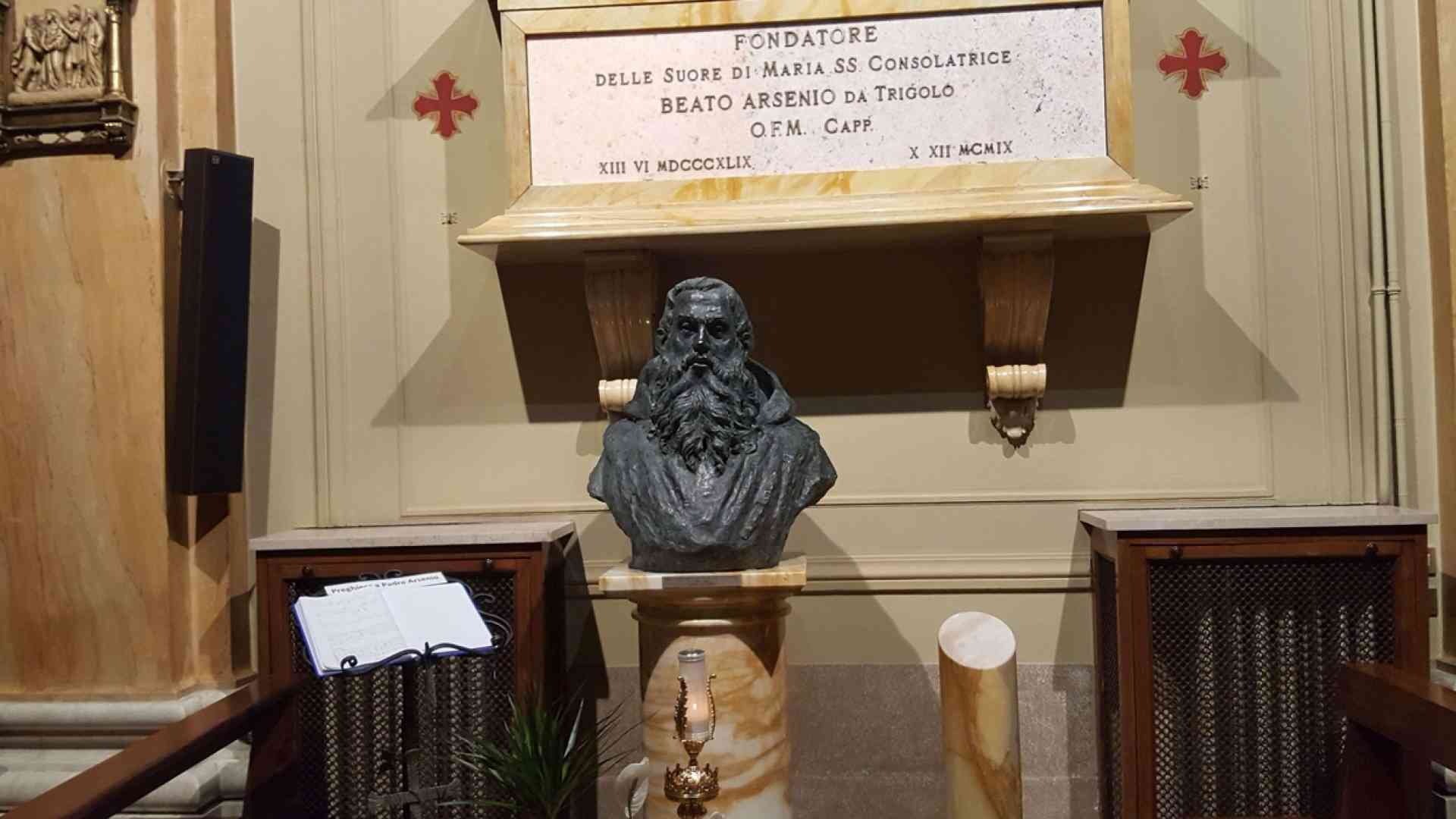 Il nuovo beato padre Arsenio, al secolo Giuseppe Migliavacca, nacque a Trigolo (Cremona) il 13 giugno 1849. A 13 anni entrò nel Seminario di Cremona e fu ordinato sacerdote nel 1874. Dopo due anni di servizio apostolico entrò nella Compagnia di Gesù. All’interno dei gesuiti fu uno zelante predicatore e confessore. Ed è proprio in questi anni arrivò la prova: accusato di “imprudenze” si vide costretto ad accettare le dimissioni dall’Ordine. Nel 1892 fu incaricato dall’arcivescovo di Torino, Davide Riccardi, di seguire un gruppo di aspiranti religiose: fu quello il nucleo delle Suore di Maria Santissima Consolatrice. Don Giuseppe adeguò le regole ignaziane per il nuovo Istituto, diventando così fondatore delle Suore di Maria Santissima Consolatrice (1893); poi sopraggiunse di nuovo la prova più dura e umiliante con false ed infamanti accuse. Nel 1902 entrò, su suggerimento del cardinale arcivescovo di Milano, il beato Andrea Carlo Ferrari, tra i cappuccini lombardi col nome di padre Arsenio Maria. Morì il 10 dicembre 1909 nel convento cappuccino di Bergamo.