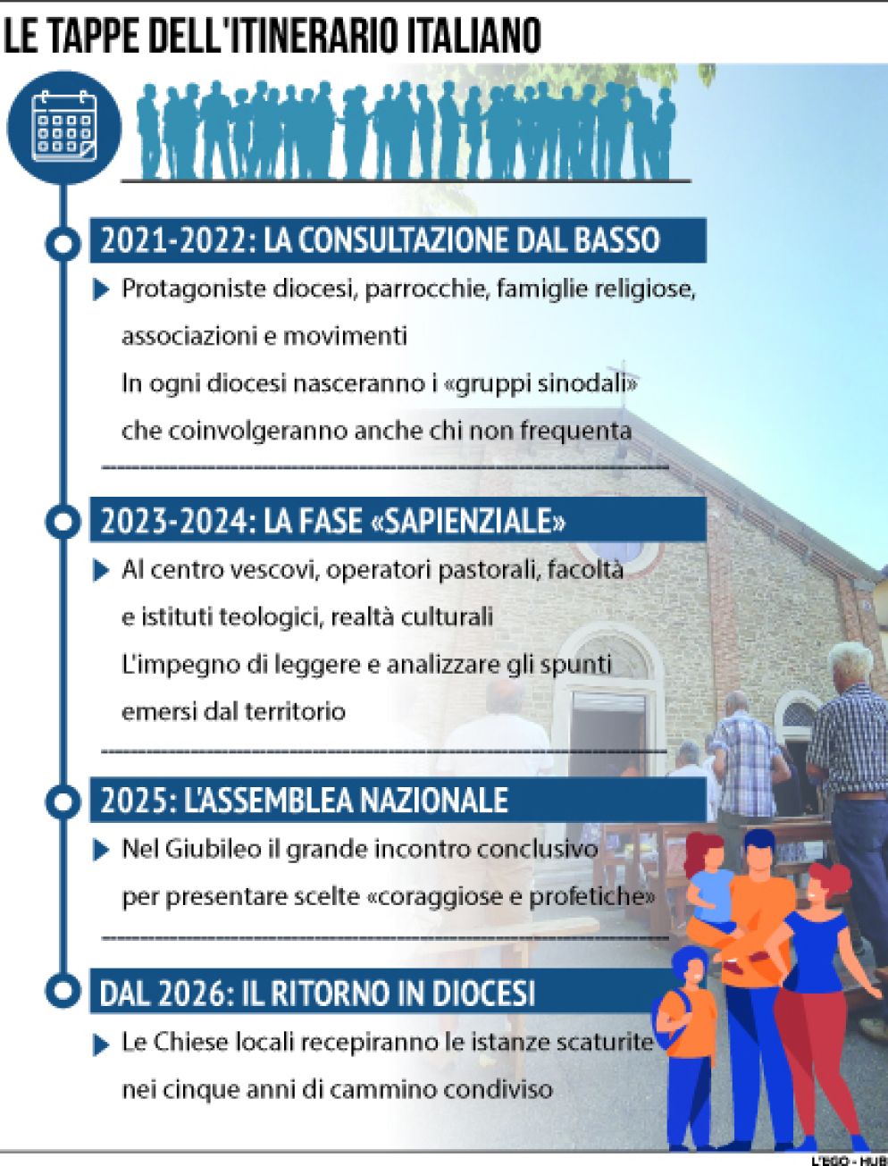 Da quest'anno al 2022 protagoniste diocesi, parrocchie e movimenti. In ogni diocesi nasceranno i «gruppi sinodali» aperti anche ai lontani. Durante il Giubileo la grande assemblea nazionale