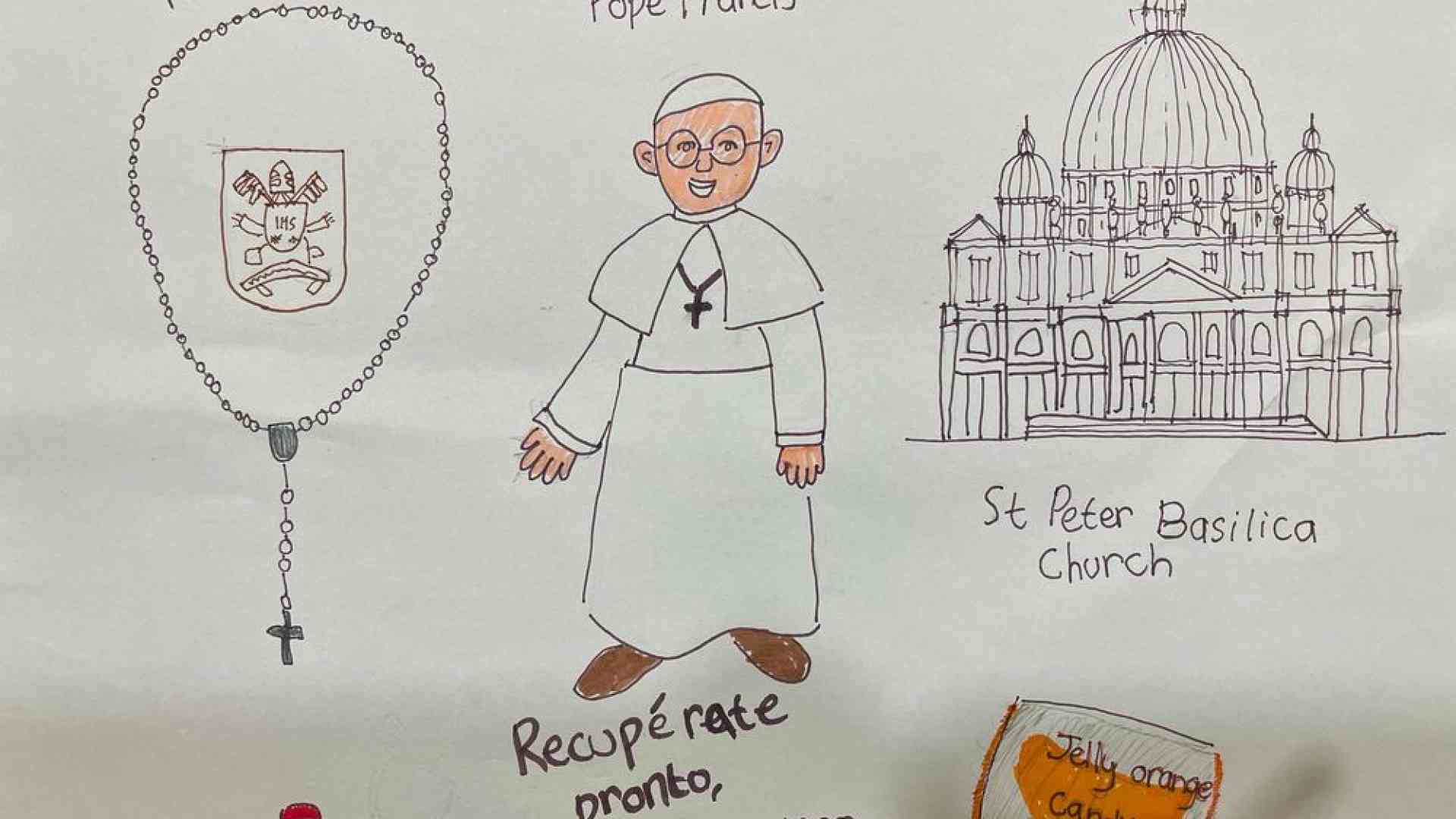 «Caro Papa, preghiamo per te». Nei disegni l'abbraccio dei bambini