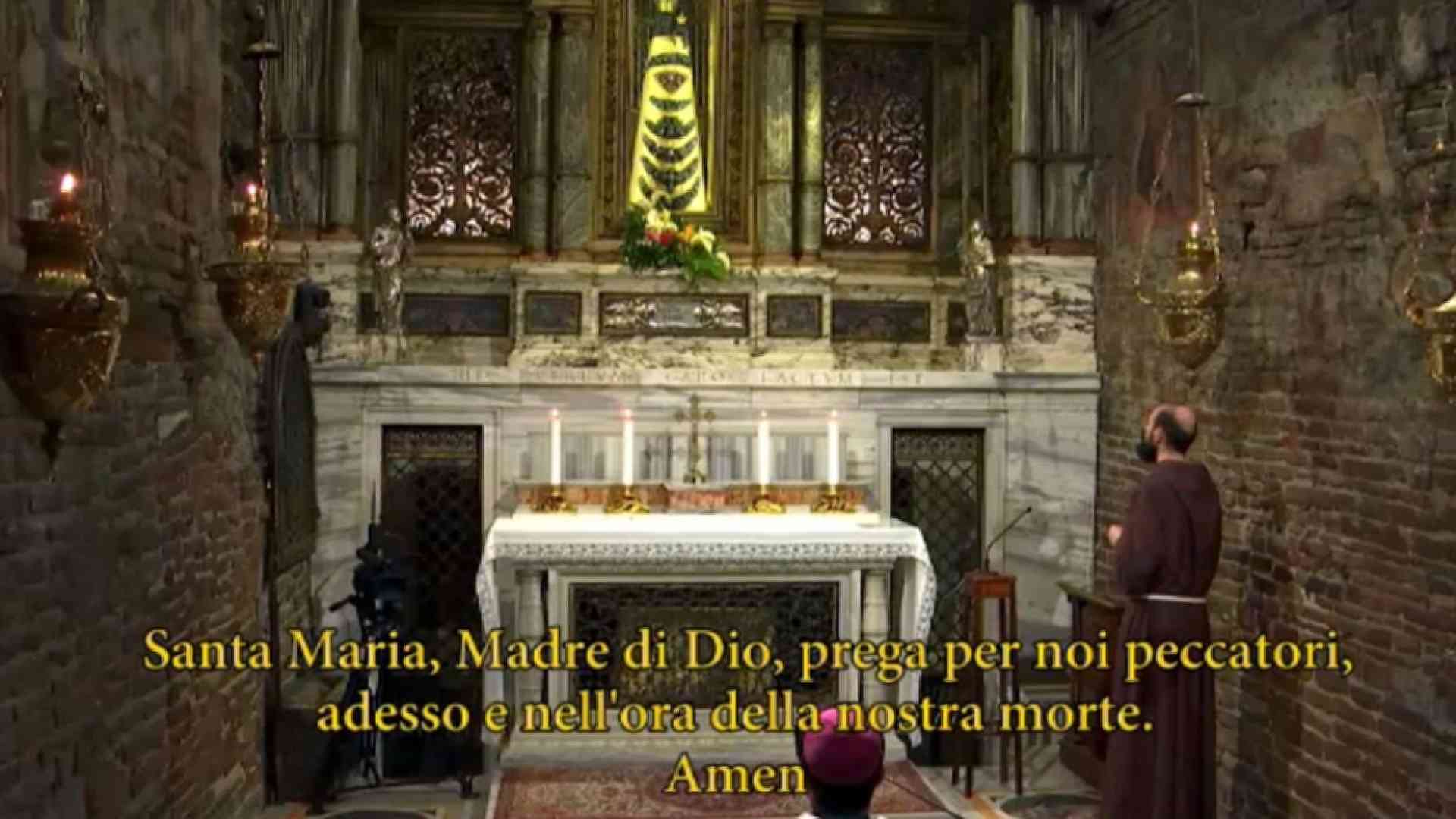 L’abbraccio della Madre che stringe a sé l’Italia intera. Senza dimenticare nessuno, neppure il più piccolo e sperduto dei villaggi. Una preghiera intima e insieme comunitaria, nel clima familiare, domestico, della casa. La Santa Casa di Maria. Da Loreto, dal luogo in cui la Vergine ha pronunciato il suo perenne fiat a Dio si è alzata delicata eppure fortissima l’invocazione di aiuto, la richiesta di protezione.