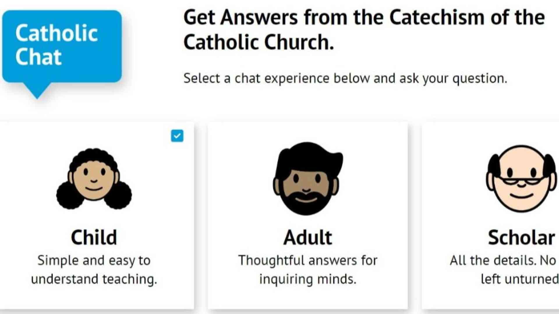 Gli esperti virtuali che si possono consultare su Catholic.chat sono tre, divisi per livello: bambino, adulto e studioso.