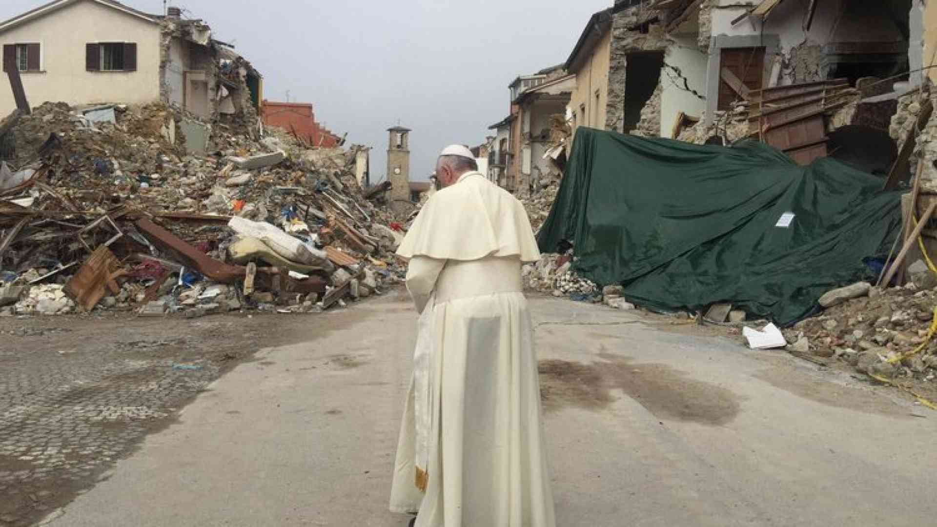 , il pontefice si è incamminato per la strada principale, l'unica percorribile del paese, che è interamente zona rossa. Si è fermato a pregare davanti alle rovine da dove nelle prime ore dopo la scossa delle 3:36 del 24 agosto erano stati estratti i corpi di due ragazzi.Quarta tappa ad
