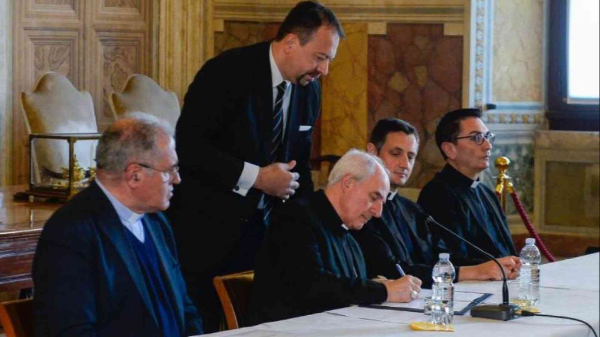 Sette faldoni sigillati con la ceralacca hanno preso la strada del Dicastero per le cause dei santi. Custodiscono atti e documenti che ricostruiscono la vita e testimoniano le virtù eroiche, la fama di santità e dei segni del servo di Dio Giampaolo Mollo, sposo, padre di famiglia e diacono permanente della diocesi di Roma di cui ieri si è chiusa l’inchiesta diocesana della causa di beatificazione. La cerimonia si è svolta nella Sala della Conciliazione del Palazzo Apostolico Lateranense ed ha offerto l’occasione per ricordare un uomo che «non è stato celebre agli occhi del mondo ma è stato grande agli occhi di Dio» come ha affermato il vescovo Michele Di Tolve che ha presieduto la sessione. Giampaolo Mollo nacque a Roma il 5 novembre 1941, primogenito di tre figli. A 4 anni perse il padre, la madre, per garantire ai figli un futuro migliore, li iscrisse al Convitto Nazionale. Durante le vacanze estive, conobbe Anna Liberace, che nel 1966 divenne sua moglie. Dopo un aborto spontaneo Anna chiese a Padre Pio la grazia di avere altri figli. Nel 1968 nacque Sabrina e nel 1971 Francesco. «In un tempo in cui la famiglia cristiana è messa alla prova – ha osservato il vescovo -, la figura di Giampaolo si impone come segno profetico. Mostra che è possibile vivere la santità nel cuore della famiglia senza rinunciare alla pienezza della vita spirituale e al servizio ecclesiale». Nonostante le gioie familiari e il riconoscimento sociale, Giampaolo viveva una profonda inquietudine. La sua vita cambiò negli anni ‘70, quando la moglie e i figli si avvicinarono alla comunità di preghiera carismatica “Comunità Maria” che lo introdusse a una nuova esperienza di fede. «Fu nel cuore della famiglia che avvenne la sua conversione» ha ribadito Di Tolve. Dopo aver ricevuto l’effusione dello Spirito Santo, decise di dedicarsi al Signore diventando diacono permanente nel 1986, uno dei primi della diocesi di Roma. «Il diaconato fu per lui il coronamento di una chiamata a servire – ha proseguito il presule -, una vocazione che si integrava con la vita familiare». Nel 1987, insieme ad altre due coppie, fondò la Comunità Gesù Risorto per promuovere l’evangelizzazione e aiutare i bisognosi. Quando la malattia lo colpì nel 1991, Giampaolo affrontò la sofferenza con fede, vivendola come una “resurrezione nella sofferenza”. «Fu per lui un’ulteriore chiamata a offrire tutto di sé – ha concluso il vescovo -. Reagì con forza e dolcezza insieme. Trasformò il dolore in preghiera, la sofferenza in offerta, la fragilità in testimonianza». La figlia Sabrina, intervenuta al termine di una cerimonia molto partecipata, ha ricordato che offrì la malattia «per la Chiesa, per il Papa e per i fratelli. In ospedale diventò un evangelizzatore instancabile, dalla sua stanza partivano benedizioni, consolazioni e conversioni». Giampaolo Mollo morì il 1° settembre 1998. «Non ha mai chiesto la grazia della guarigione – ha affermato commossa la moglie Anna -; anzi, il suo dolore e la sua preoccupazione erano di lasciarmi sola con i figli». Nei 32 anni di matrimonio il marito le ha insegnato ad «accettare la volontà del Signore come dono». Per il postulatore Paolo Vilotta, nominato portitore, Mollo ha lasciato la testimonianza «di una famiglia “diacona”. Il sacramento dell’Ordine e quello del Matrimonio si sono incontrati in armonia, sostenendosi e rafforzandosi reciprocamente».