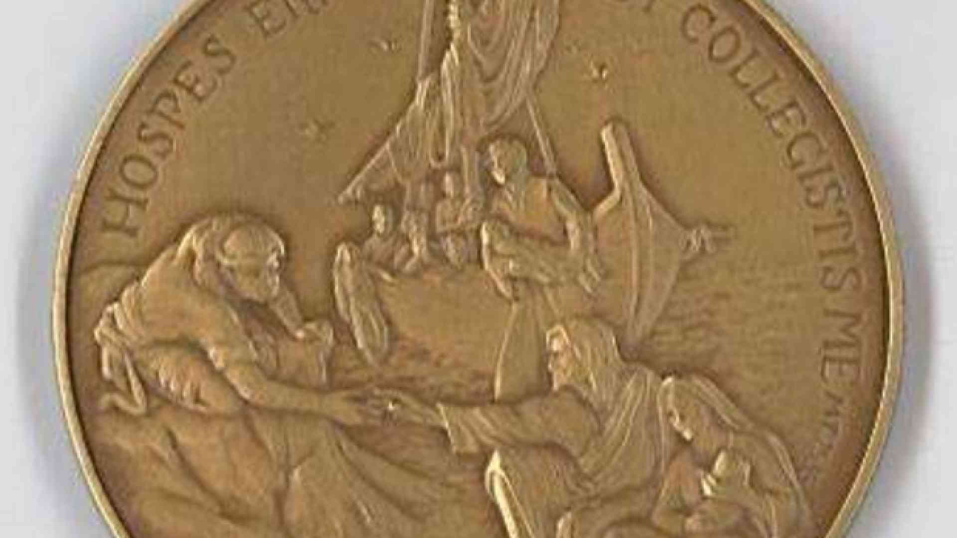 Un nuovo gesto di attenzione in più del Papa verso i migranti. Saranno proprio loro infatti i protagonisti della medaglia per il quinto anno di Pontificato di Francesco. Disponibile dal 28 luglio 2017, la medaglia riporta sul rovescio «la mano tesa segno di accoglienza verso coloro che fuggono dalla loro patria in cerca di un futuro migliore: hospes eram et collegistis me (Mt 25,35) - si legge nel comunicato diffuso dalla Sala stampa vaticana - Seduto per terra e quasi confuso tra la gente c`è un uomo che somiglia a Cristo: quello che avete fatto ad uno solo di questi miei fratelli più piccoli, l`avete fatto a me». Opera di Mariangela Crisciotti, la medaglia riporta sul dritto lo stemma di Papa Francesco con la scritta FRANCISCUS P.P. ANNO V MMXVII e il nome dell'artista. Sul bordo: la scritta E CIVITATE VATICANA con il numero della medaglia.