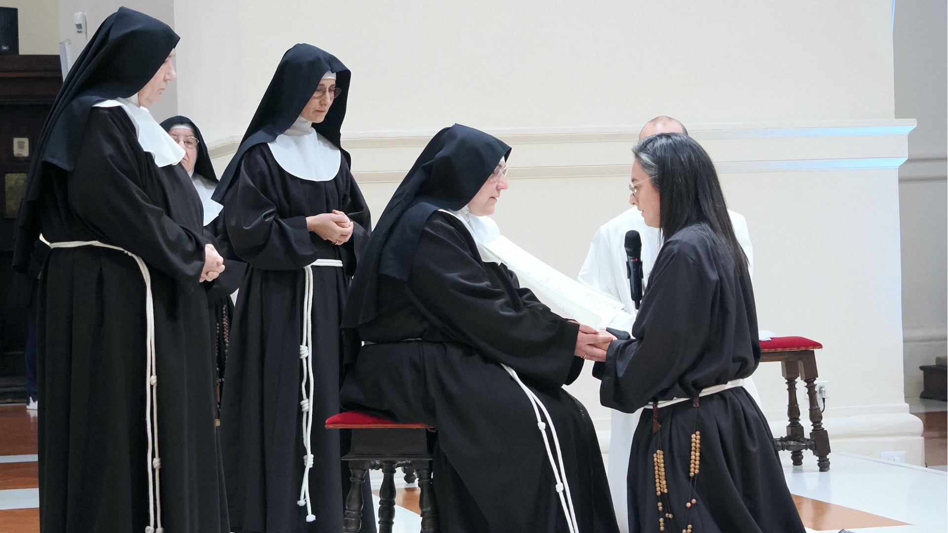 «Con un gruppo di giovani ho incontrato quelle che ora sono le mie sorelle: durante la loro testimonianza, mi ha colpito come si relazionavano e rispondevano alle domande, non tagliando fuori emozioni e sentimenti, in sintesi la maniera umana di vivere la loro consacrazione. Così pian piano ho intuito che avrei potuto indagare la domanda vocazionale senza aver paura, ho ricevuto lo slancio per potermi avvicinare a loro e iniziare un cammino di discernimento, fino all’ingresso in postulato tre anni fa», ricorda suor Marzia Francesca, che dopo il liceo scientifico si era laureata al Politecnico e aveva lavorato in diversi cantieri. «Non conoscevo la spiritualità clariana, ho saputo dopo che c’era un monastero a Milano. Il Signore mi ha condotto a Lui attraverso questa forma di vita che mi spinge a comprendere di più il Vangelo per incarnarlo maggiormente, dargli la possibilità di diventare corpo in me oggi: un cammino di conformazione che santa Chiara invita a compiere “specchiandoci” in Lui».
