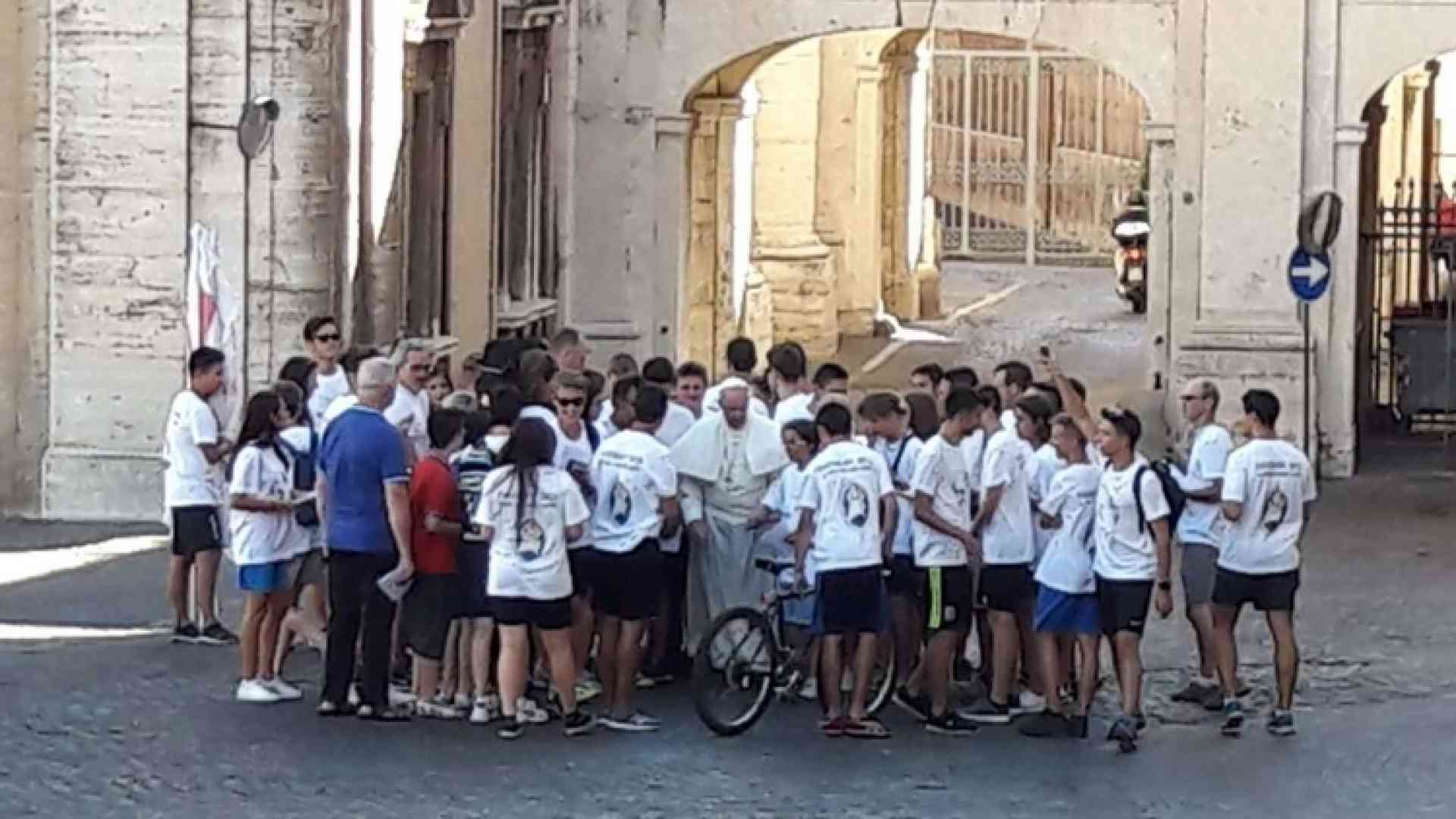 Un fuori programma anche questa mattina per Papa Francesco. Intorno alle 10, il Pontefice è uscito - a sorpresa - da Casa Santa Marta per benedire, nel piazzale antistante la Domus, un gruppo di ragazzi impegnati in un pellegrinaggio in bicicletta. In un'intervista alla Radio Vaticana dn Andrea Citterio che accompagna i ragazzi in bicicletta ha raccontato l'esperienza sulle due ruote. «Siamo due parrocchie: Canegrate e San Giorgio su Legnano, in provincia di Milano, della diocesi di Milano. Siamo venuti a Roma per partire in fiaccolata con la bicicletta in occasione del Giubileo. Abbiamo ricevuto la benedizione da Papa Francesco e ora partiamo contenti!».