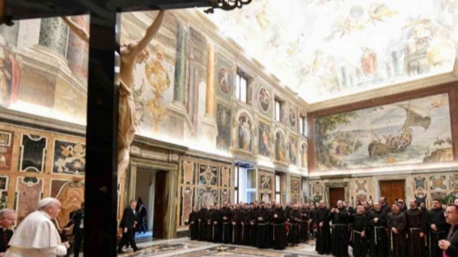 È un Papa come sempre in vena di battute simpatiche quello che ha incontrato la Comunità dei Frati Minori di La Verna e della provincia toscana. Nella mia patria, in Argentina, ha raccontato, «ci sono dei mangiapreti che quando arriva un prete toccano ferro, perché porta jella, ma mai, mai si fa questo con l'abito francescano! È curioso. Mai è insultato un francescano. Perché, non si sa». O probabilmente questo si spiega con il fatto che «il vostro abito fa pensare a san Francesco e alle grazie ricevute. Andate avanti così, e non importa – aggiunge il Pontefice - se sotto l'abito c'è il blue jeans, non c'è problema, ma andate avanti!». L’aneddoto fa parte del discorso pronunciato durante l’udienza vaticana per l’ottavo centenario del dono delle stimmate, ricevute da san Francesco d’Assisi il 14 settembre 1224. Stimmate che richiamano il dovere dei cristiani di «rivolgersi in modo speciale ai “segnati” dalla vita, che portano le cicatrici di sofferenze e ingiustizie subite o di errori commessi. E in questa missione il santo della Verna è un compagno di cammino, che sostiene e aiuta a non lasciarsi schiacciare da difficoltà, paure e contraddizioni, proprie e altrui. È ciò che Francesco ha fatto ogni giorno, dall’incontro con il lebbroso in poi, dimenticando sé stesso nel dono e nel servizio, arrivando perfino, negli ultimi anni, a “disappropriarsi” – questa parola è chiave – disappropriarsi in un certo senso di ciò a cui aveva dato inizio, aprendosi con coraggio e umiltà a vie nuove, docile al Signore e ai fratelli».