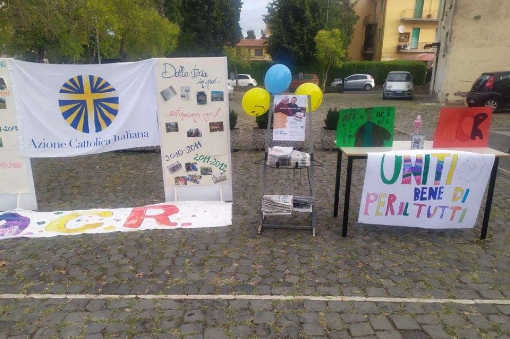 Un banchetto decorato da palloncini e cartelloni realizzati dai bambini dell’Acr, montato davanti alla parrocchia, in mattinata è stato il quartier generale di una quindicina di volontari, per la maggior parte adulti e ragazzi dell’Azione cattolica. I più giovani hanno anticipato l’inizio delle attività dell’anno proprio per poter allestire lo stand e colorarlo con i propri disegni. «Ci siamo divisi su turni per poter partecipare anche alla Messa domenicale», spiega Emanuela Giuli, presidente parrocchiale di Ac ed educatrice. In tantissimi si sono fermati a prendere copie del quotidiano e chiedere informazioni. «La nostra è una comunità molto unita – prosegue –, viviamo in un quartiere di periferia che somiglia più a un piccolo paese, a misura d’uomo, con tante famiglie, bambini, giovani, anche se non manca la presenza di anziani. La parrocchia è un punto di riferimento, e prima dell’arrivo del coronavirus facevamo molte attività, come il presepe vivente o la Via Crucis animata, che speriamo davvero di poter riprendere in questo anno pastorale».