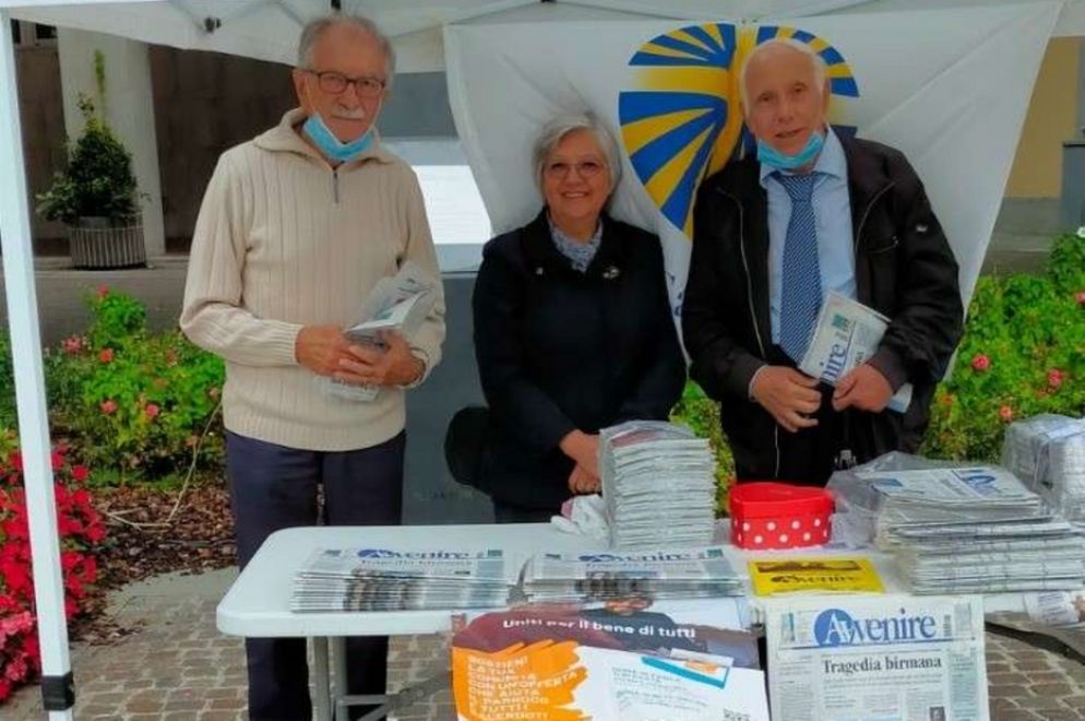 «Se non c’è chi coinvolge, telefona, avvisa, consuma le scarpe, insomma, chi "tira la carretta", non si va da nessuna parte. Certo, ci vuole una buona capacità di progettualità, ma è altrettanto necessario che ci sia chi, umilmente, si occupa delle cose concrete». A dirlo è Caterina Pozzato, membro del Consiglio pastorale unitario dell’Unità pastorale di Sandrigo (diocesi di Vicenza) dov’è incaricata del coordinamento di Azione cattolica. Domenica Caterina era in prima fila, con altri dieci volontari, per la parte pratica. Sul sagrato e all’interno di quattro delle cinque chiese dell’Unità pastorale, tra le 8 e le 10.30, sono stati allestiti i banchetti per la vendita del quotidiano. La fatica e l’impegno hanno portato un buon risultato di copie vendute (65) ma, soprattutto, sono serviti a rinsaldare quello spirito di comunione che nell’Unità pastorale (con Sandrigo, Lupia, Ancignano, Bressanvido, Poianella) si respira da tempo. «Come membri di Ac delle varie parrocchie – riprende Caterina – cerchiamo di coordinarci e collaborare sia per il servizio pastorale che per le nostre attività. Ci sono molti laici impegnati e una bellissima rete di animatori. Quest’estate 120 animatori si sono turnati per gestire i 600 ragazzi che hanno partecipato al Grest, da giugno ai primi di settembre. Altra cosa meravigliosa che sono riusciti a fare i gruppi di Acr e giovanissimi è stato continuare a operare in presenza, anche nei periodi Covid (eccetto i due mesi di lockdown totale), ovviamente seguendo le indicazioni sanitarie. Ma questa rete poco potrebbe se non fosse supportata da cinque sacerdoti, molto competenti e motivati: il parroco, don Giovanni Sandonà, don Giovanni Gasparotto, don Antonio Gonzato, don Piero Miglioranza e il cappellano don Davide Gasparotto. La loro è una bella testimonianza di presbìteri che lavorano insieme, mantenendo però sempre l’attenzione sulle peculiarità di ciascuna parrocchia».