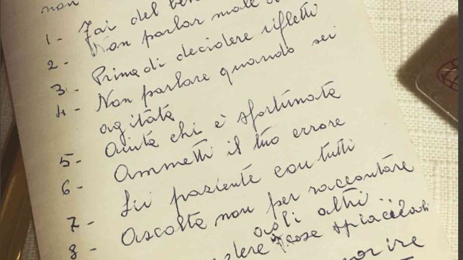 Come detto, la prima regola è: fai del bene a tutti. Poi: non parlar male di nessuno; prima di decidere rifletti; non parlare quando sei agitato; aiuta chi è sfortunato; ammetti il tuo errore; sii paziente con tutti; ascolta non per raccontare ad altri; non credere a cose spiacevoli; preparati a morire.