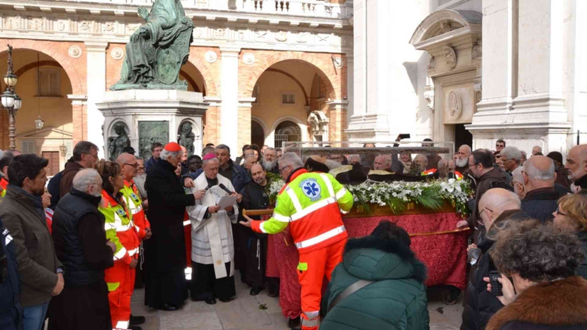 Il programma delle celebrazioniL’urna è stata collocata presso la Cappella tedesca. Seguirà alle 18 la Messa per gli operatori sanitari e una riflessione e preghiera serale. Il 12 febbraio sarà celebrata alle 11 la Messa presieduta da monsignor Tonucci. Il 13 febbraio, alle 11, sarà invece monsignor Decio Cipolloni, vicario della prelatura, a presiedere l'Eucaristia.Tutto si concluderà domenica 14 febbraio con una Messa alle 8.30 presieduta da padre Franco Carollo, rettore della Basilica di Loreto, con partenza dell’urna per Bologna.