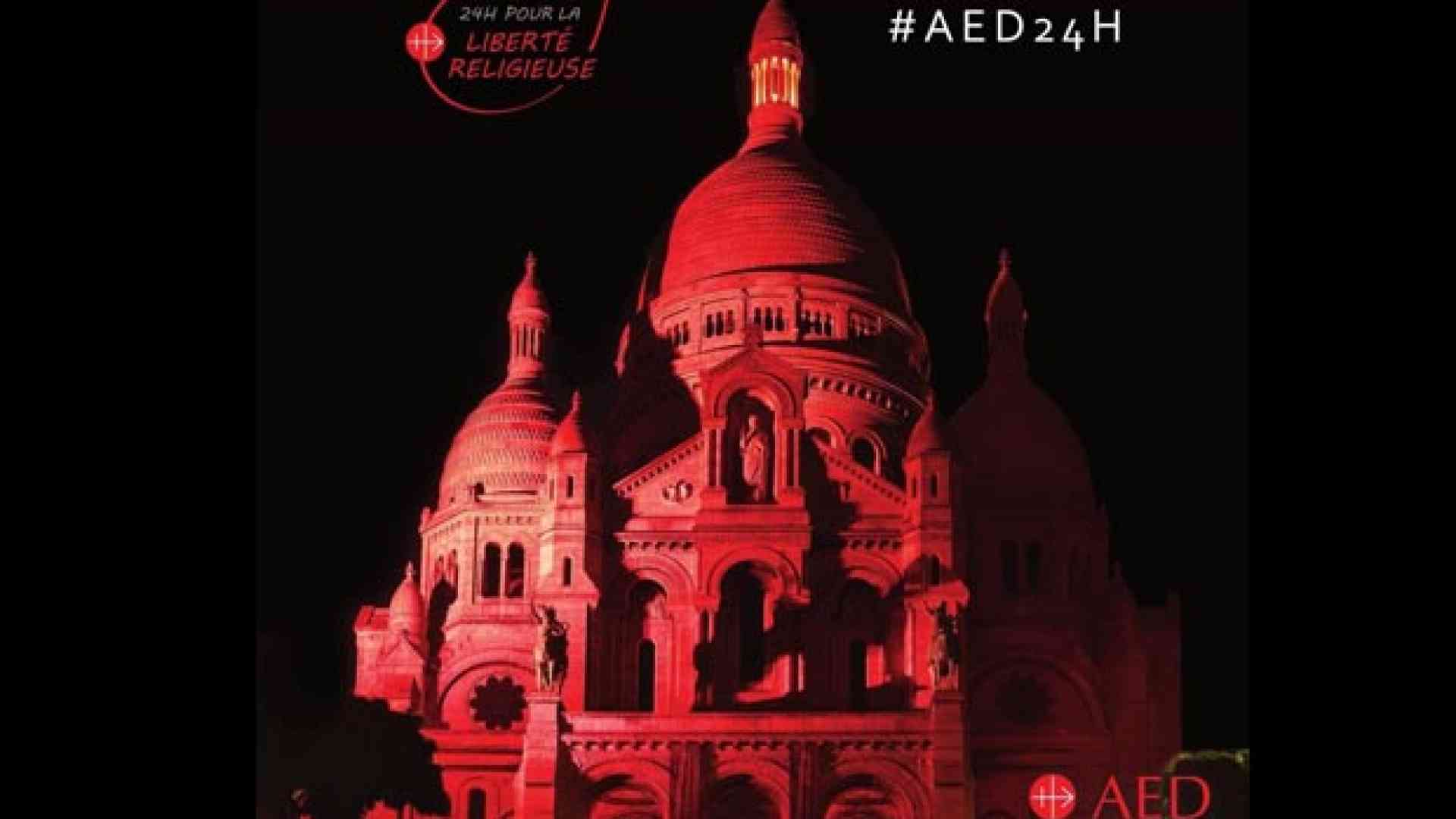 Questa sera si tinge di rosso la Basilica del Sacro Cuore, nel quartiere di Montmartre a Parigi. Il sangue dei martiri torna a “illuminare” i più importanti monumenti del mondo: dopo la Fontana di Trevi a Roma, la Cattedrale e l’Abbazia di Westminster a Londra e il Cristo Redentor a Rio de Janeiro, il 12 ottobre Aiuto alla Chiesa che Soffre (ACS) ha promosso - nell'ambito della manifestazione 24 ore per la libertà religiosa - l'accensione delle luci rosso porpora nella Basilica del Sacro Cuore e a seguire una veglia di preghiera per quanti non sono liberi di vivere la propria fede.