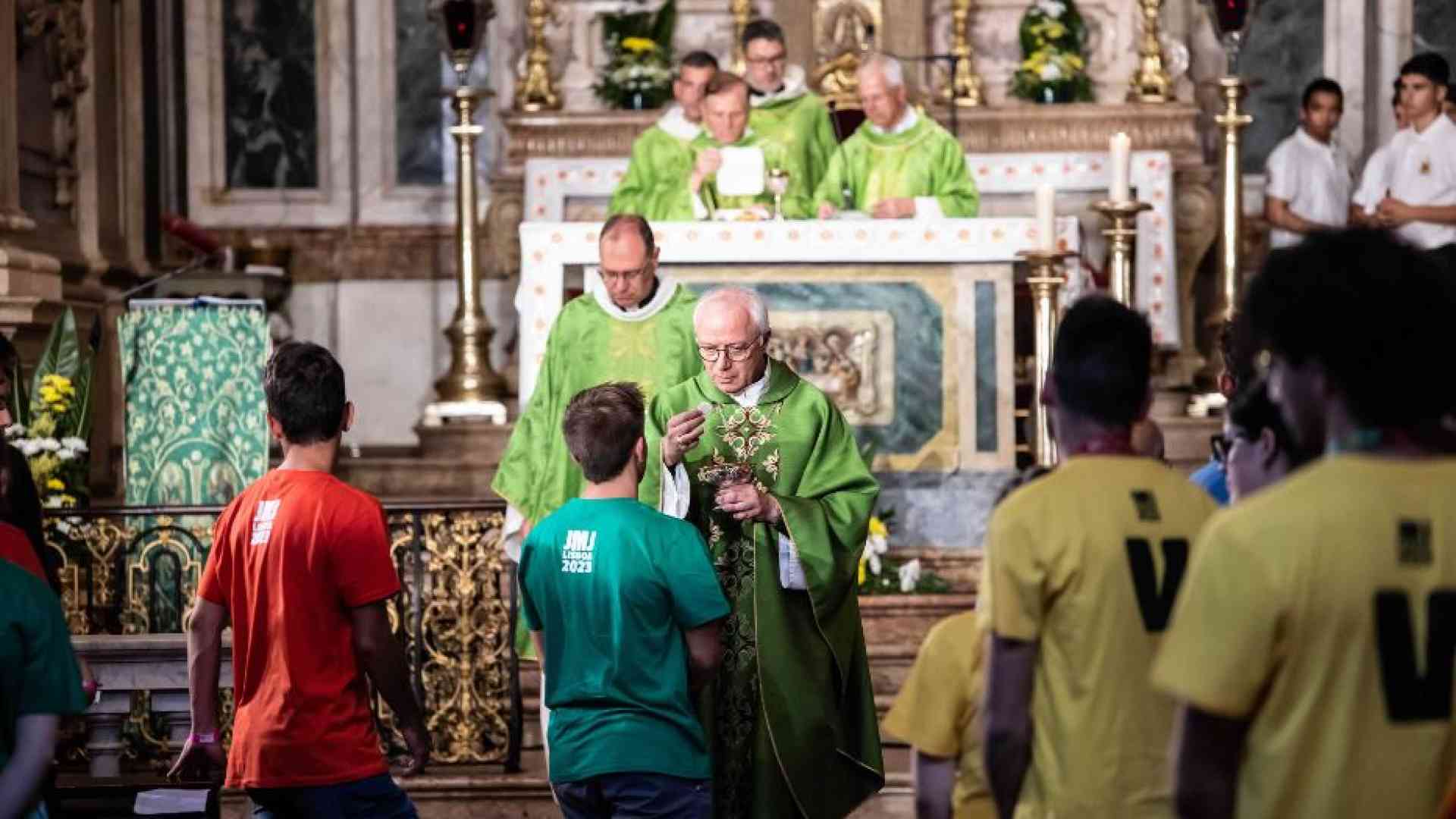 Una Chiesa gremita di giovani pellegrini: le diocesi italiane hanno iniziato a popolare Lisbona in vista della Giornata mondiale della Gioventù che si svolgerà dal 1 al 6 agosto. La Chiesa di cui scriviamo è un punto di riferimento degli italiani a Lisbona sin dal 1550: si tratta del tempio dedicato a Nostra Signora di Loreto, dal 1953 affidata ai padri Dehoniani. Stamattina molti pellegrini italiani si sono raccolti nel luogo sacro perché alle 11:00, l’arcivescovo di Cagliari e segretario generale della Cei, monsignor Giuseppe Baturi, ha presieduto la celebrazione eucaristica della XVII domenica del Tempo Ordinario. La messa è stata trasmessa in diretta su RaiUno, la regia era a cura di Gianni Epifani. Il servizio liturgico è stato curato dai volontari dell’associazione Santi Pietro e Paolo, la musica e il canto sono stati affidati al coro del decanato vigentino della arcidiocesi di Milano, diretto da don Riccardo Miolo.