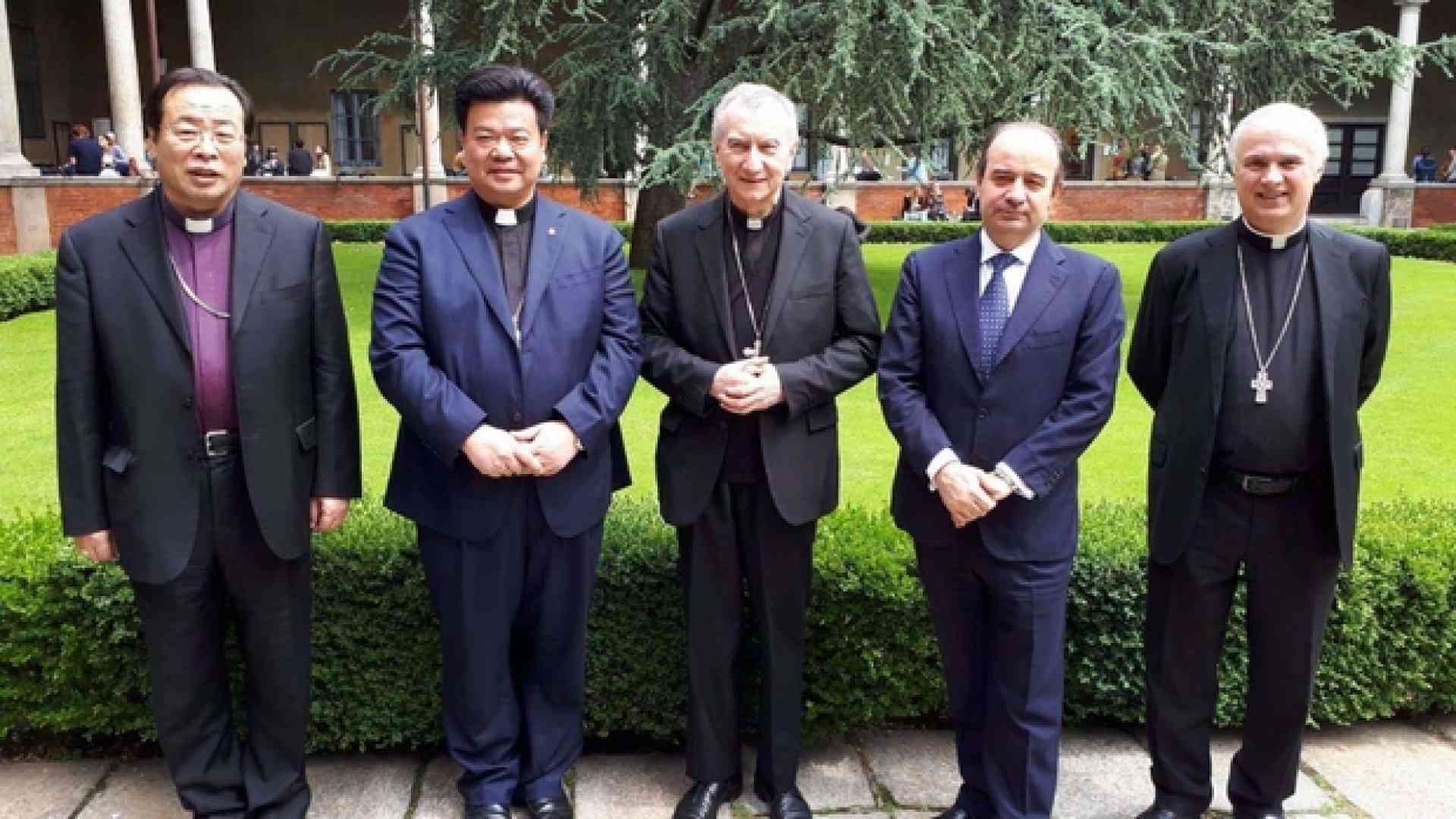 Primo incontro pubblico fuori dal Vaticano tra il segretario di Stato e due vescovi cinesi. L'occasione è stata un convegno alla Cattolica