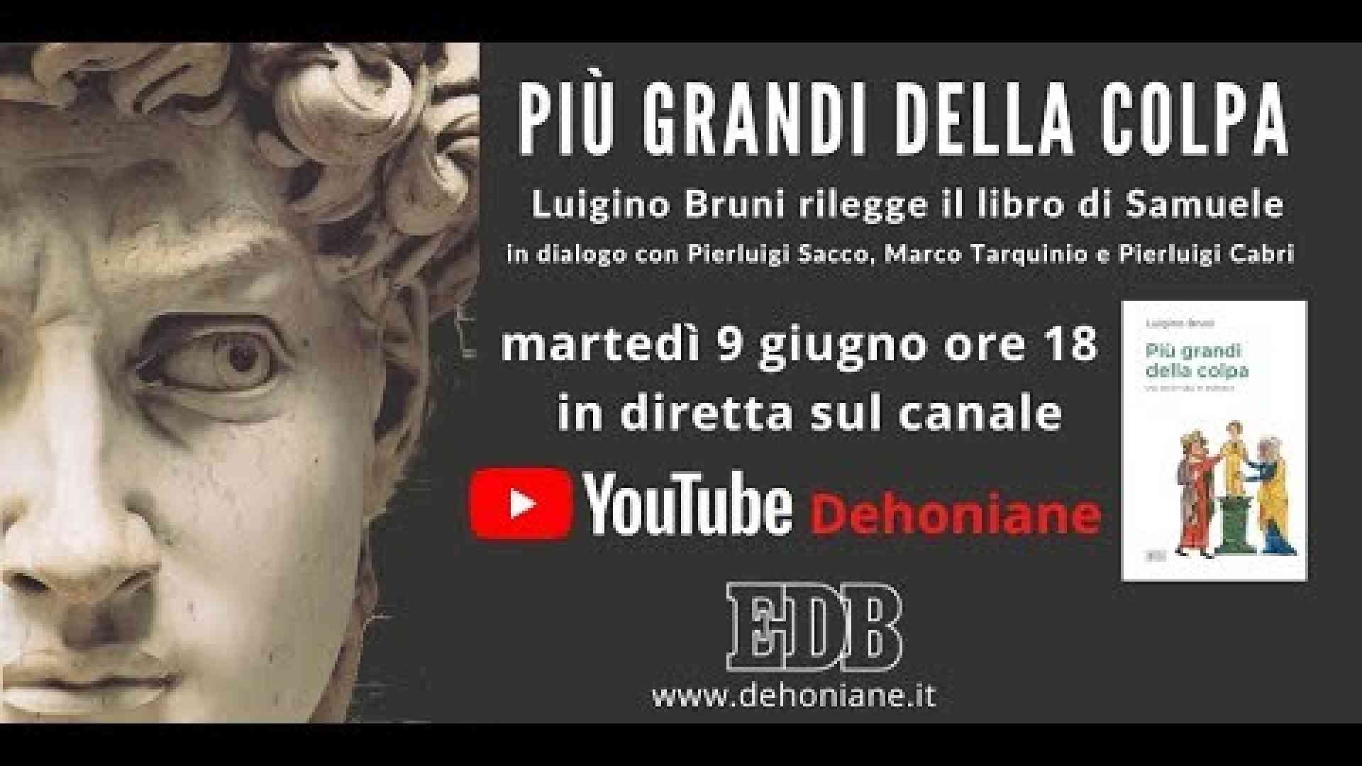 Appuntamento martedì 9 giugno, alle 18, sul canale YouTube Dehoniane per la presentazione del nuovo libro di Luigino Bruni. In “Più grandi della colpa" (Edizioni Dehoniane Bologna, 264 pagine, euro 18,50) l’autore, coordinatore del progetto Economia di Comunione ed editorialista di Avvenire, propone una rilettura di Samuele, un libro ambientato in un passaggio epocale della storia teologica di Israele, tra la fine del tempo dei Giudici e la nascita della monarchia (che la cronologia classica colloca attorno al Mille a.C.).