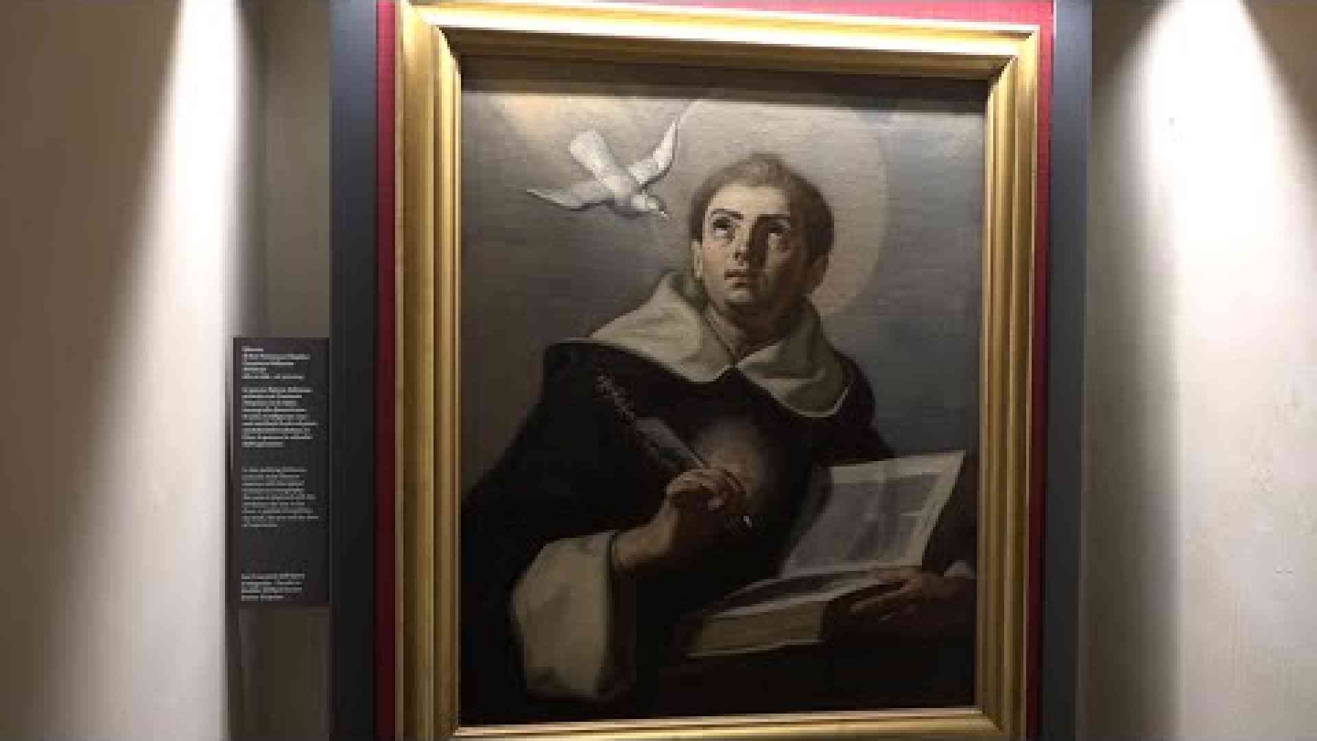 Da domenica scorsa sono tornati visibili al pubblico i cimeli e le reliquie del grande filosofo e teologo l’Aquinate e allievo di sant’Alberto Magno la cui vita è strettamente legata alla città di Napoli di cui è uno dei patroni dopo la peste del 1605: qui visse ben due anni (1272-1274) della sua vita poco prima di morire nell’abbazia laziale di Fossanova prima di partecipare al Concilio di Lione e nel periodo giovanile da giovane frate in formazione dal 1244 al 1246 . Ed è attribuibile al periodo napoletano la composizione da parte di Tommaso della terza parte della Summa Theologiae. Il restauro di questi piccoli spazi ha permesso, tra l’altro, di far tornare agli antichi splendori anche la famosa tavola duecentesca raffigurante la Crocifissione di fronte alla quale san Tommaso, raccolto in preghiera, ebbe la visione di Cristo: una visione mistica che fermò il santo dall'intento di bruciare le sue opere. Il Gesù in croce tra la Vergine e San Giovanni avrebbe rivolto a san Tommaso d ’Aquino le famose parole: «Bene scripsisti de me, Thoma (Bene hai scritto di me, Tommaso)». Il luogo è diviso in due stanze introdotte da un breve ingresso, dove c'è subito uno dei pezzi forti, il ritratto dipinto nel 700 da Francesco Solimena.