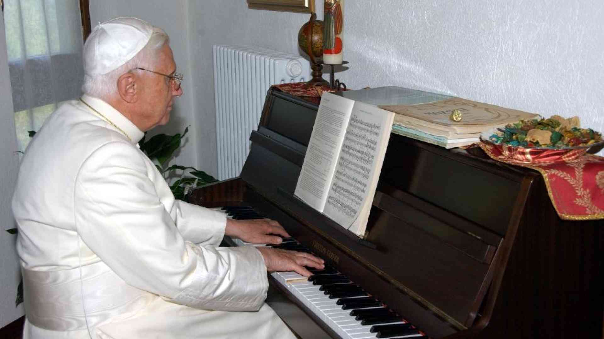 Nell’estate del 2005 fece il giro del mondo l’immagine di Benedetto XVI seduto al pianoforte durante la vacanza a Les Combes, in Val d’Aosta Sulla partitura l’amato Mozart