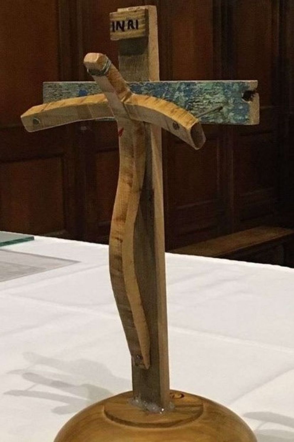 «Sull'altare della chiesa ho messo un Crocifisso realizzato con il legno dei barconi utilizzati dai migranti per attraversare il Mediterraneo. Il legno è grezzo e vero e porta i segni della sofferenza, della morte ma anche della speranza».