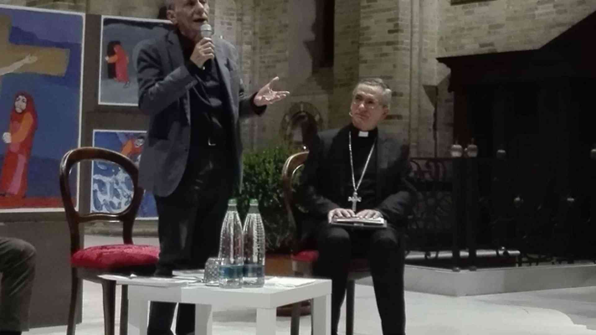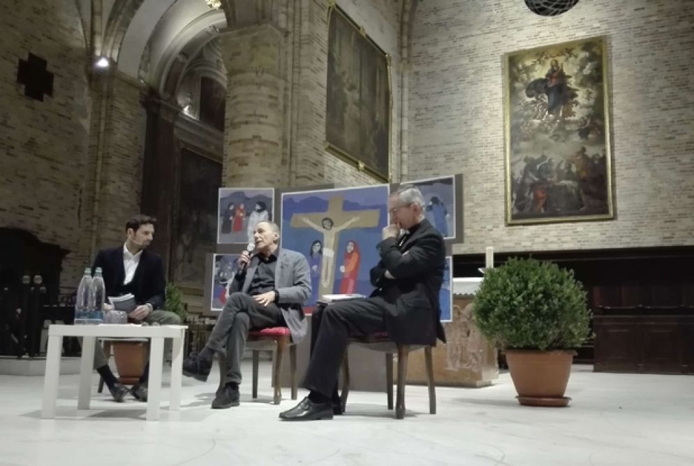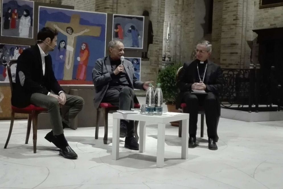 In duomo il dialogo tra il vescovo e il noto cantautore: «Non si può essere felici se si è soli»