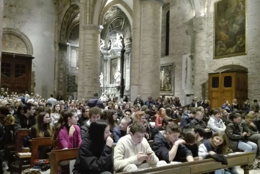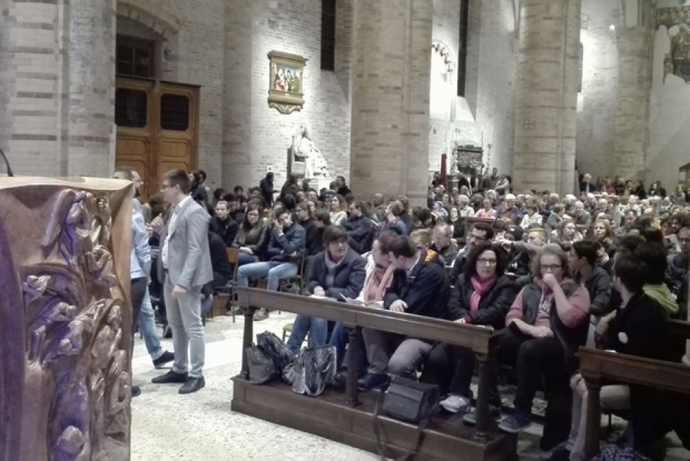 Vecchioni e il vescovo Gianotti con i giovani sul senso della felicità
