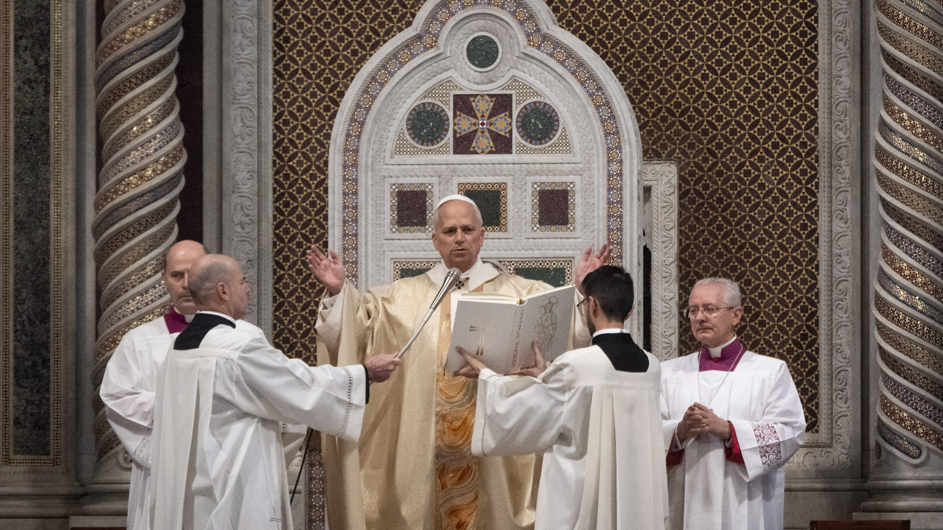 Guardare alla Cattedrale di San Giovanni in Laterano, e alla sua storia, per imparare l’arte di essere «operai della Chiesa vivente», missionari del Vangelo. Ieri papa Leone XIV ha presieduto, dalla Cattedra papale situata nell’abside della basilica, la Messa nella solennità della Dedicazione di San Giovanni, avvenuta nel IV secolo con papa Silvestro I e per volontà dell’imperatore Costantino. «Questa basilica, infatti, “Madre di tutte le Chiese”, è molto più di un monumento e di una memoria storica: - ha sottolineato il Pontefice durante la sua omelia, davanti circa 2700 persone tra concelebranti e fedeli, - è ”segno della Chiesa vivente, edificata con pietre scelte e preziose in Cristo Gesù, pietra angolare”». E proprio San Giovanni in Laterano, prima chiesa della storia, ricorda ai cristiani che il nome “Chiesa” nasce per indicare l’«assemblea di fedeli», ha ribadito il Papa, e solo dopo tre secoli questo viene associato all’edificio, al «tempio che li raccoglie». Proprio partendo dall’edificio, dalla struttura edificata da mani d’uomo, Leone XIV ha proposto con chiarezza le linee guida per l’agire dei cristiani chiamati «a lavorare nel grande cantiere di Dio», oggi. Per prima cosa, occorre abbandonare fretta e superficialità. «Nel lavorare con ogni impegno al servizio del Regno di Dio, non siamo frettolosi e superficiali: - ha esortato Prevost, spiegando anche il suo metodo di lavoro nei primi sei mesi del pontificato - scaviamo a fondo, liberi dai criteri del mondo, che troppo spesso pretende risultati immediati, perché non conosce la sapienza dell’attesa». La «storia millenaria della Chiesa», ha aggiunto, insegna «che solo con umiltà e pazienza si può costruire, con l’aiuto di Dio, una vera comunità di fede, capace di diffondere carità, di favorire la missione, di annunciare, di celebrare».