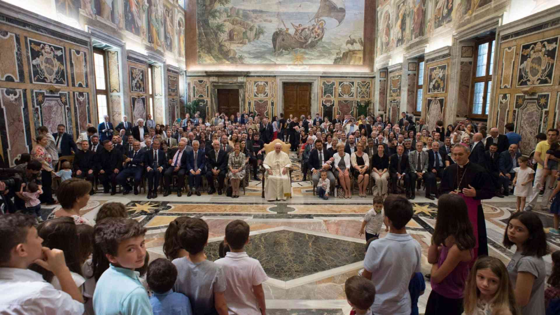 «Fa dolore dirlo: oggi si parla di famiglie diversificate, di diversi tipi di famiglia. Sì è vero: famiglia è una parola analoga, si dice anche "la famiglia delle stelle", "la famiglia degli animali". Ma la famiglia immagine di Dio è una sola, quella tra uomo e donna. Può darsi che non siano credenti ma se si amano e uniscono in matrimonio sono a immagine e somiglianza di Dio. Per questo il matrimonio è un sacramento grande». Lo ha detto papa Francesco, parlando a braccio, rivolgendosi alla delegazione del Forum delle Associazioni Familiari ricevuta stamani in udienza in occasione dei 25 anni dalla fondazione.