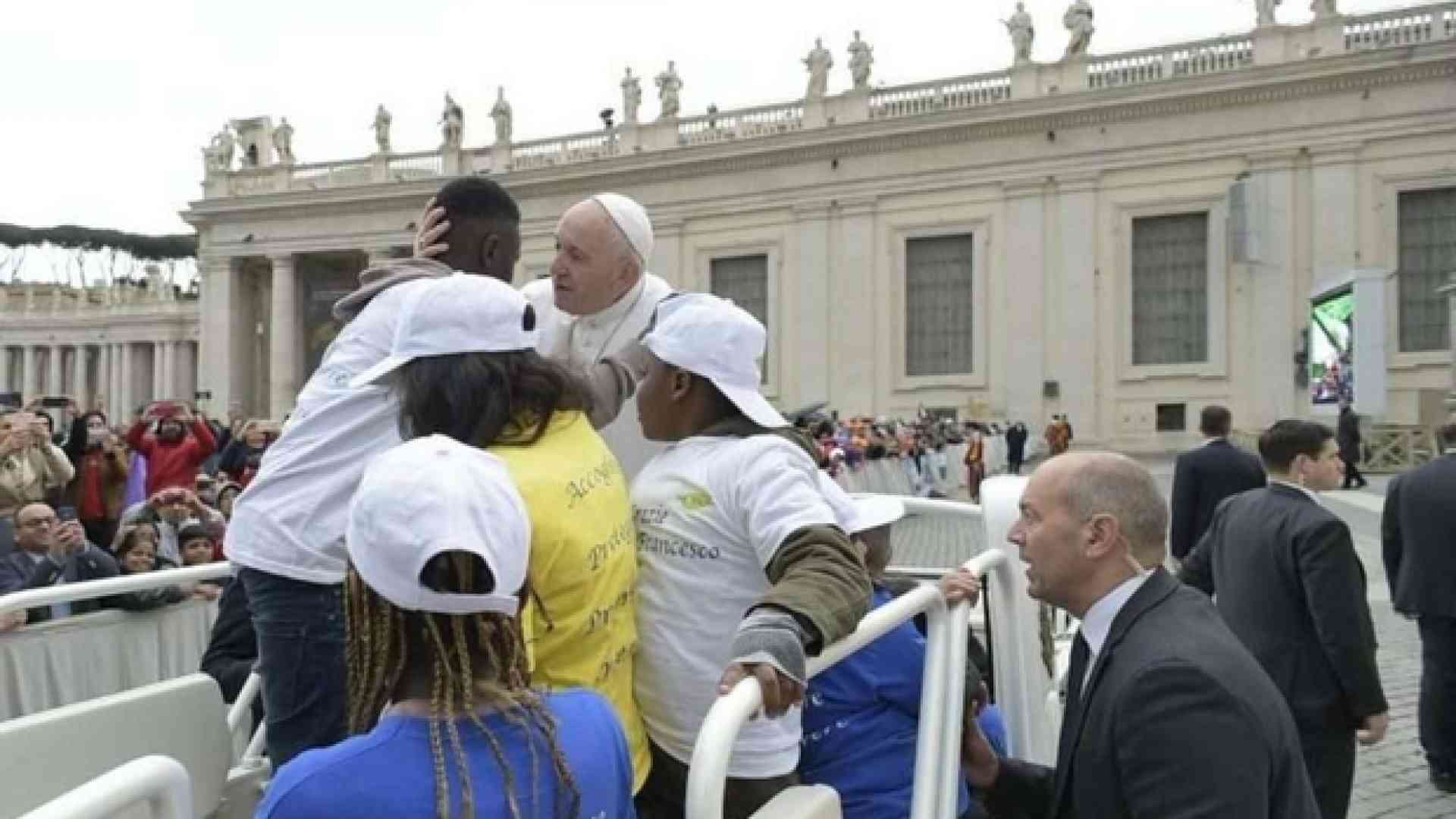 Prima dell'udienza generale papa Francesco ha fatto salire sulla papamobile 8 bambini arrivati dalla Libia con il corridoio umanitario del 29 aprile scorso e su un barcone alcuni mesi fa.