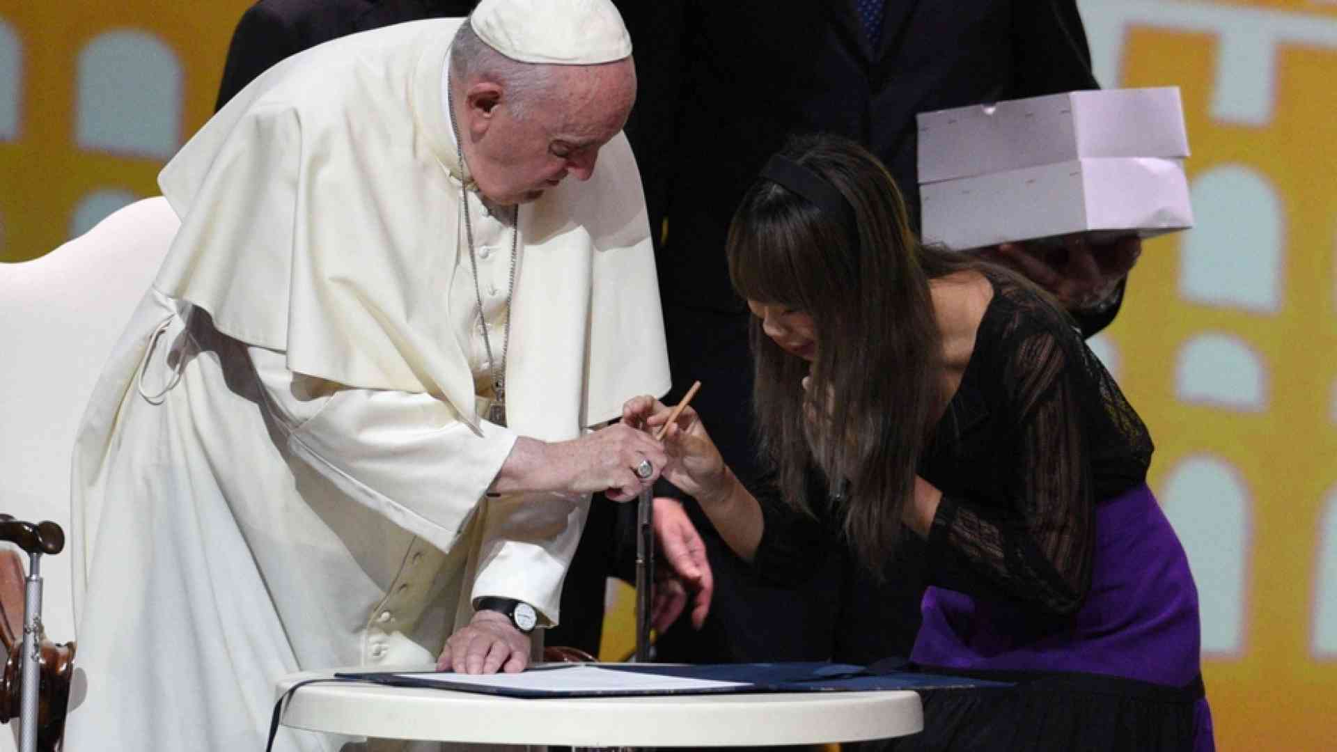 Non un’utopia, «perché la stiamo già costruendo», conclude il "Patto" firmato ieri nel teatro Lirick di Assisi dalla 14enne Lilly Ralyn Satidtanasarn, a nome di tutti i partecipanti di The Economy of Francesco, e dallo stesso papa Francesco. Un’adolescente thailandese (QUI la sua storia) e il vescovo di Roma sono i custodi di questa "giara del futuro". Un’anfora di carta e inchiostro in cui i ragazzi e le ragazze hanno raccolto i loro impegni personali, nati e maturati in tre anni di sessioni di lavoro online.
