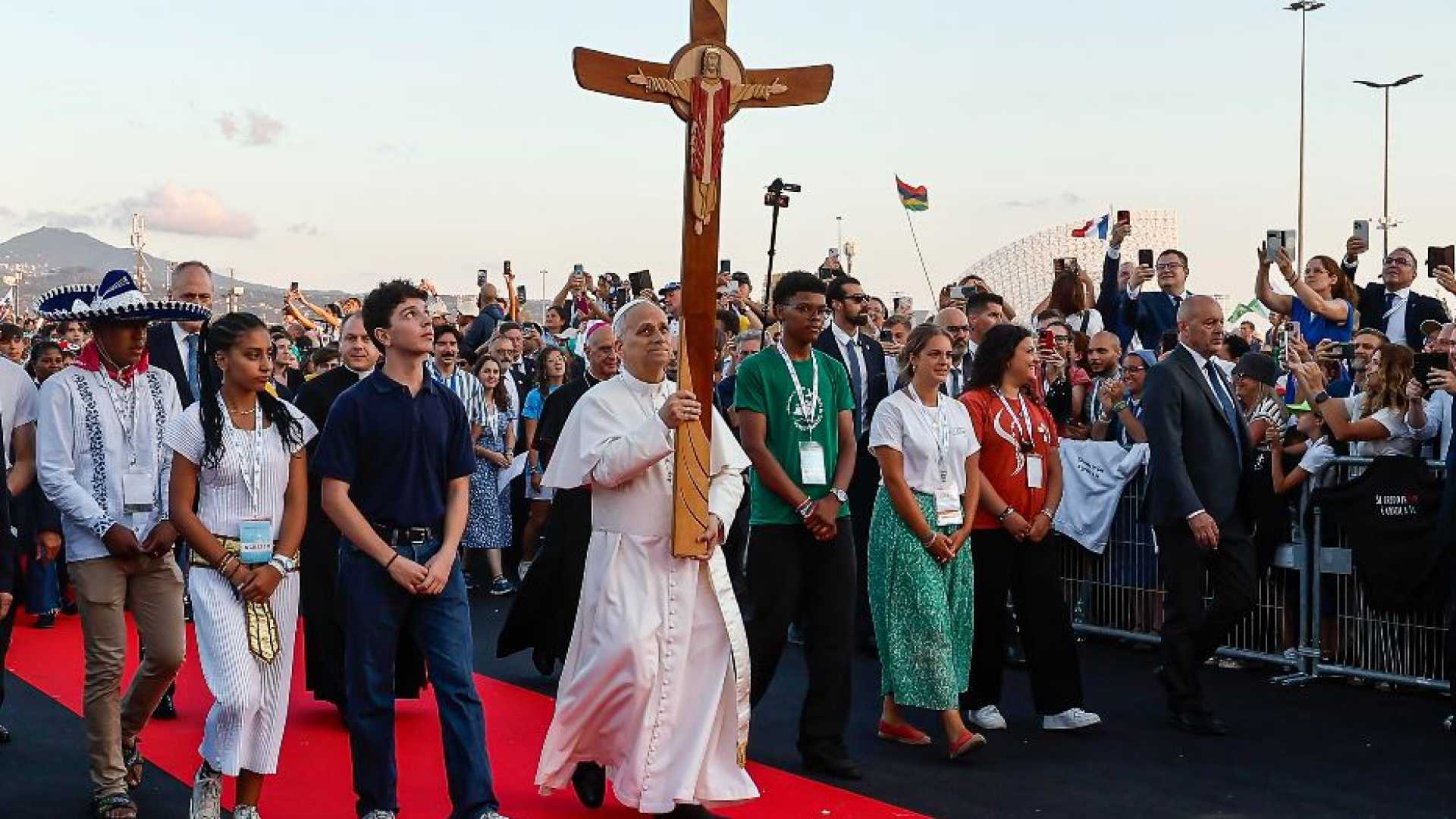 Ansa | Il Papa a Tor Vergata porta la Croce del Giubileo all'inizio della Veglia con i giovani
