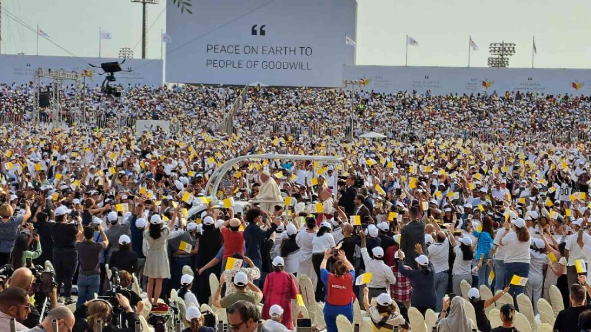 Di fronte a 30mila fedeli provenienti da tutto il Golfo Persico e riuniti nel National Stadium, Francesco ha invitato a far proprio l'insegnamento di Gesù: amare sempre, amare tutti
