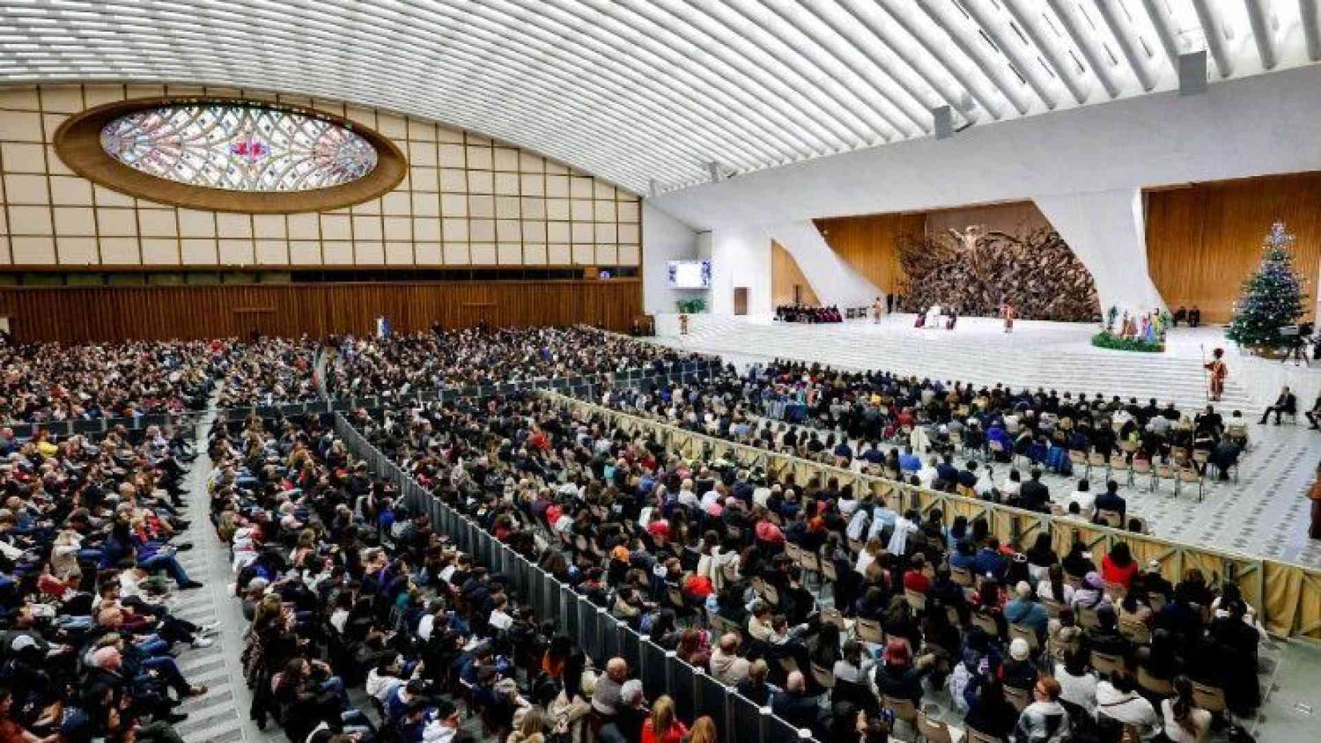 Il Papa è giunto nella grande Aula subito dopo aver tenuto il discorso alla Curia Romana nell'Aula della Benedizione. "Non dimenticare questo - ha detto ai dipendenti vaticani -: il bene cresce senza fare rumore e da' quella pace, quella gioia al cuore che è tanto bella".