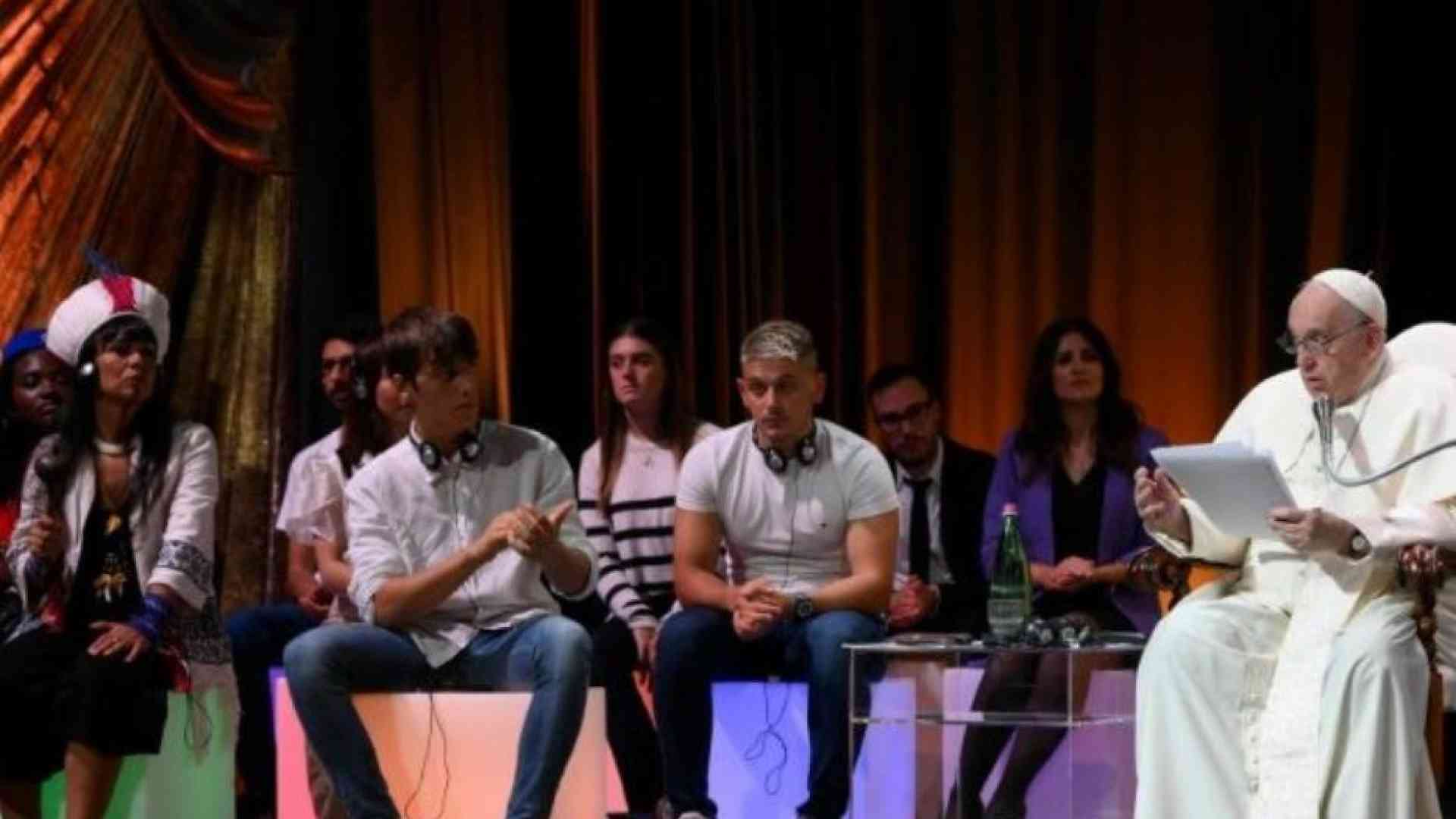«Coraggio, cari amici! Coraggio! Se sarete fedeli alla vostra vocazione, la vostra vita fiorirà, avrete storie meravigliose da raccontare ai figli e ai nipoti. Vedo che ci sono alcuni bambini lì: è bello questo, in una cultura dove si privilegia avere cagnolini o gatti e non bambini. Dobbiamo bastonare un po’ l’Italia! Credetemi: vale la pena spendere la vita per cambiare in meglio il mondo. Avanti!»