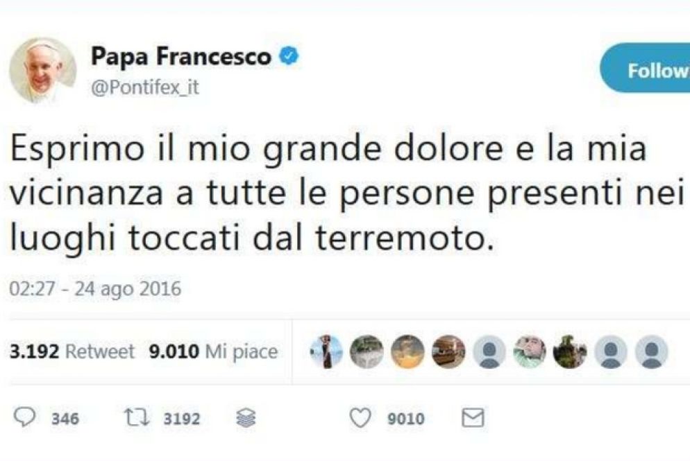 Oltre ai tweet coincidenti con le principali feste cristiane, dal Natale alla Pasqua, tra i cinguettii più ritwittati ci sono quelli che ricordano i santi, in particolare Madre Teresa e Giovanni Paolo II. Anche sull'attualità che ci colpisce da vicino il Papa su Twitter ha molto seguito: un esempio su tutti è stata l'emergenza terremoto che ha sconvolto il Centro Italia nell'estate del 2016 e durante la quale Twitter è stata una delle piattaforme social più utilizzate da terremotati e soccorritori. Se l'hashtag #PrayForItaly è stato in testa ai trend degli argomenti più "cinguettati", in Italia e nel mondo, tra i tweet diventati virali vi è stato anche quello di papa Francesco che aveva espresso dolore e vicinanza "a tutte le persone presenti nei luoghi toccati dal terremoto".