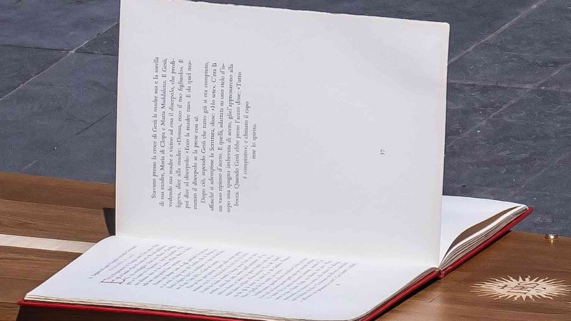 Il libro si è aperto sul capitolo 19 del Vangelo di Giovanni: ai piedi di Gesù, fra le donne che scelgono di restare fino alla fine, ci sono l'apostolo e Maria. E Cristo li affida l'una all'altro